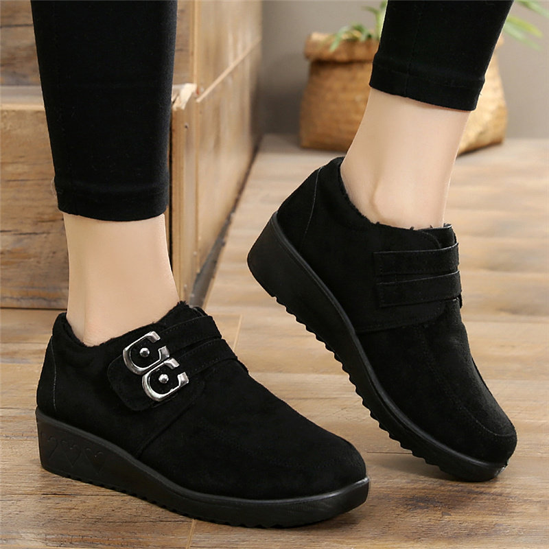 淘老北京布鞋女棉鞋单鞋平底毛毛鞋舒适软底黑工作鞋女鞋加绒豆豆鞋
