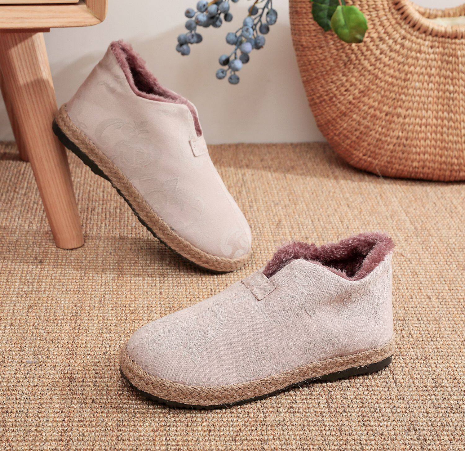 新款老北京布鞋冬棉麻加绒保暖鞋,融合传统民族风与现代舒适理念,专为茶艺师及追求禅意生活的女士设计。鞋面采用天然棉麻材质,透气亲肤,彰显质朴雅致;内里加绒处理,保暖舒适,适合秋冬季节居家或茶室穿着。平底设计贴合脚型,行走轻盈无声,契合茶道静谧氛围。经典手工纳底工艺,结实耐穿,细节处尽显匠心。无论是品茗静坐,还是日常休闲,这款鞋都以简约素雅之美,诠释东方生活美学,是追求自然、健康与内在宁静的理想之选。