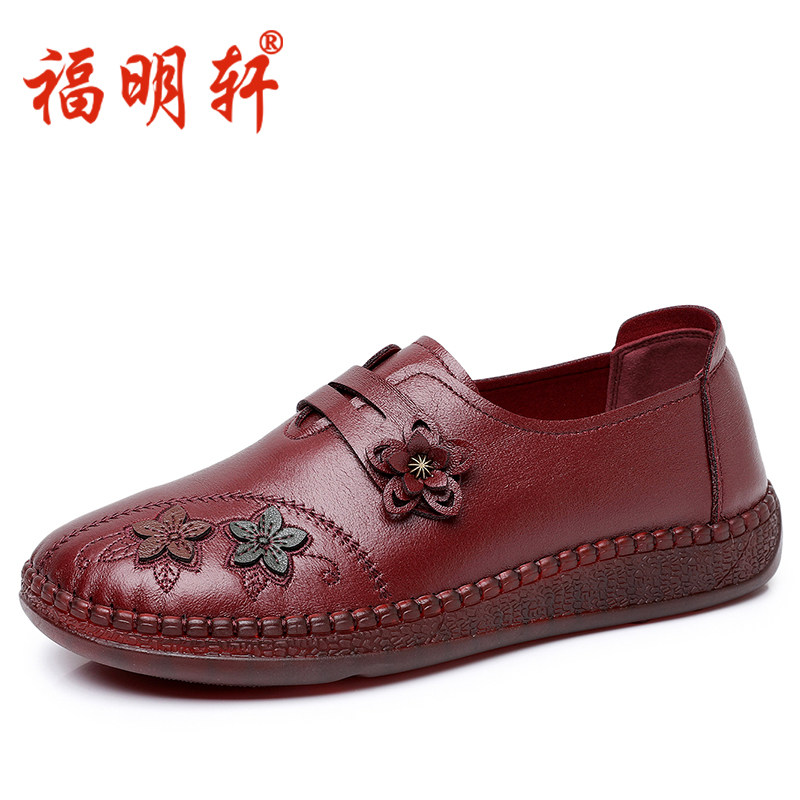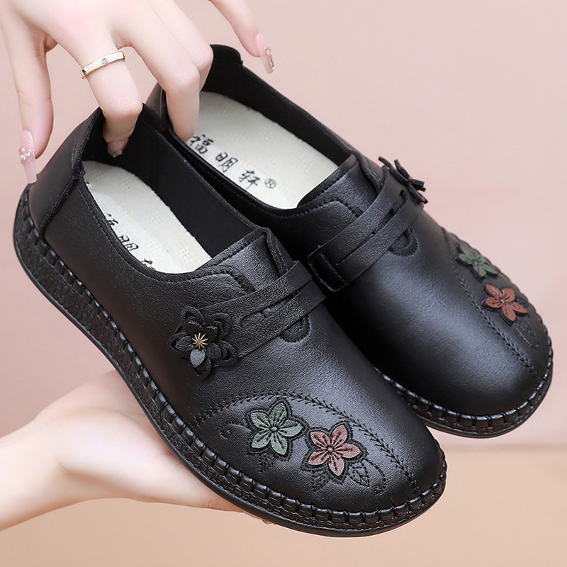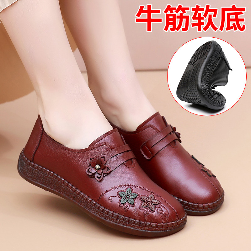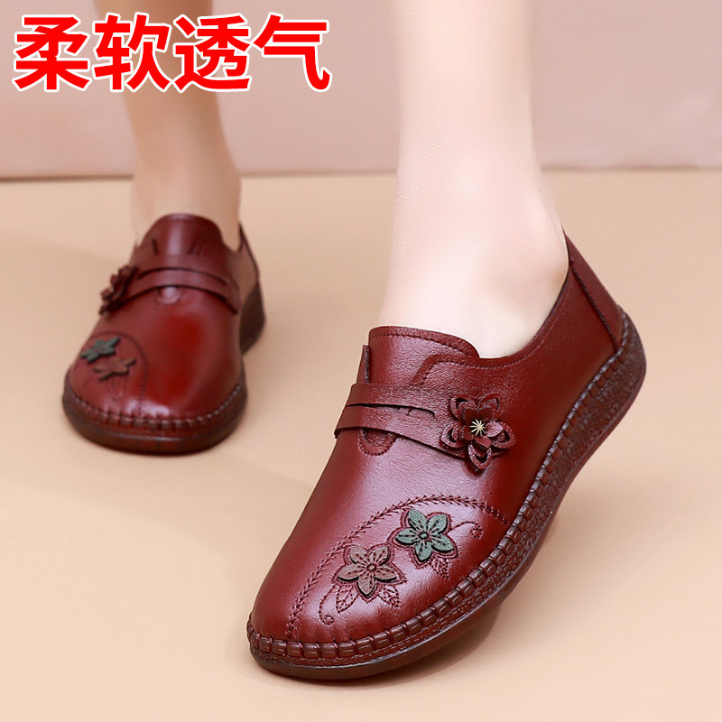 妈妈鞋老人春秋平底新款中年女鞋软底防滑舒适皮鞋中老年单鞋奶奶