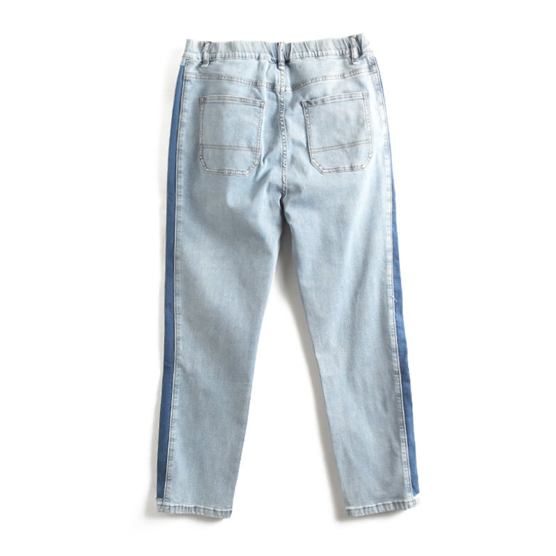 弹力直筒加绒牛仔裤女秋冬胖妹妹大码显瘦高腰九分老爹萝卜哈伦裤
