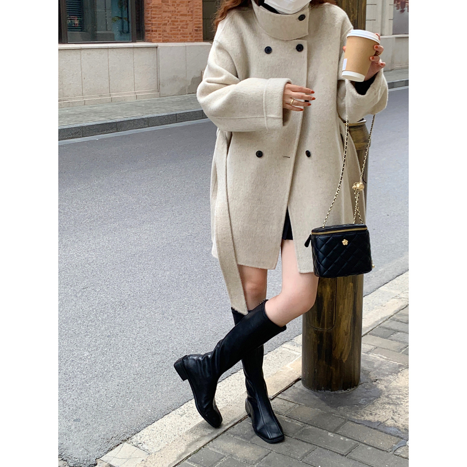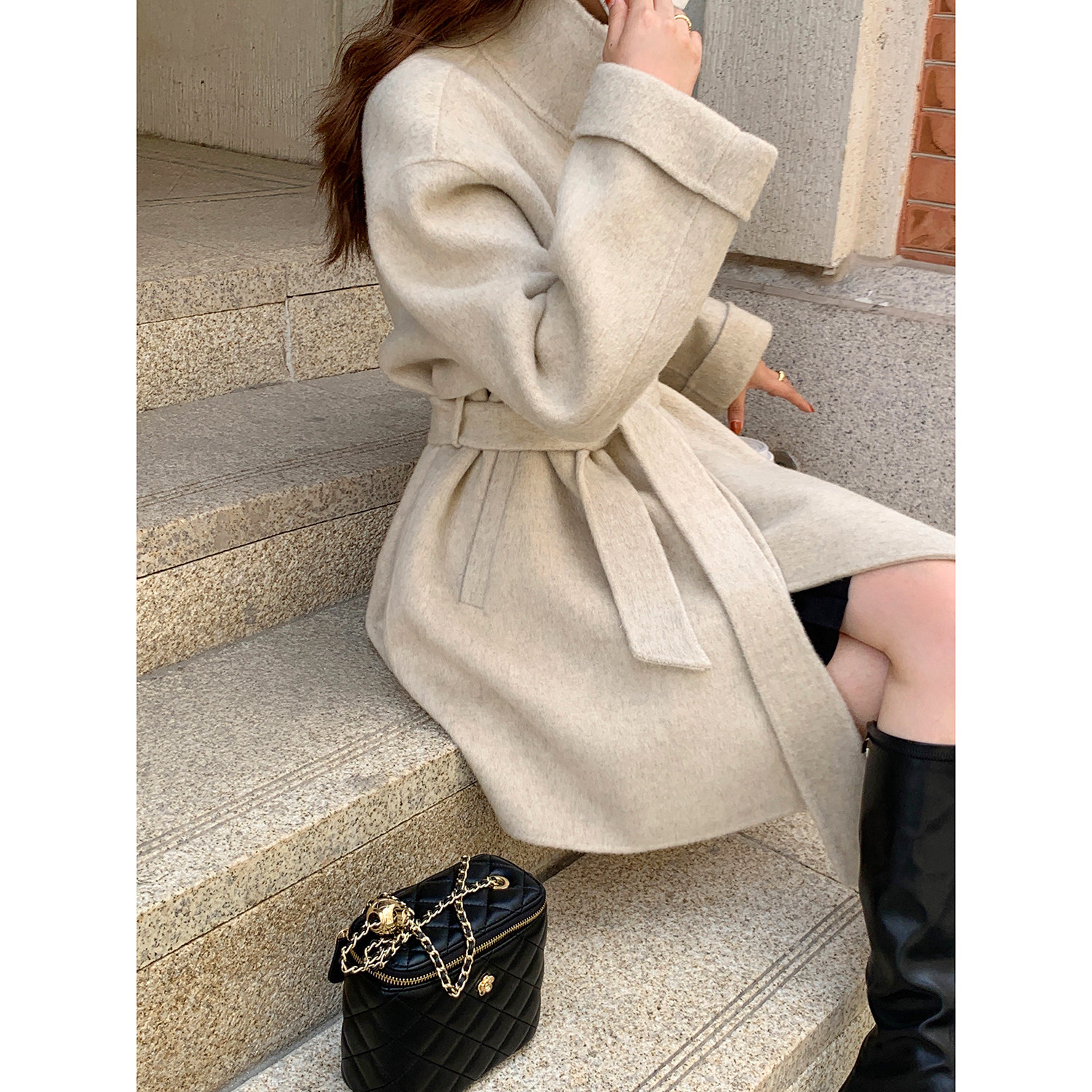 淘宝米花家【巴黎情书】立领羊毛双面呢外套小个子收腰羊绒大衣女