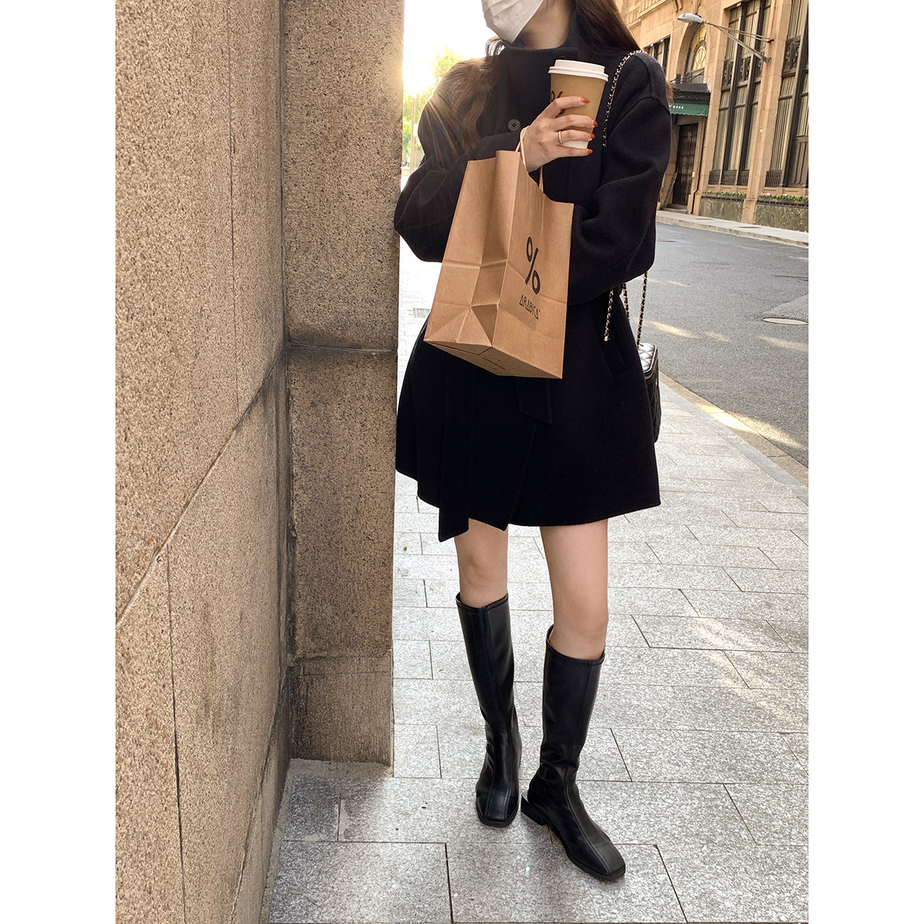 淘爱情魔鬼鱼 黑色中长款立领毛呢外套女2025冬季新款双面羊毛大衣