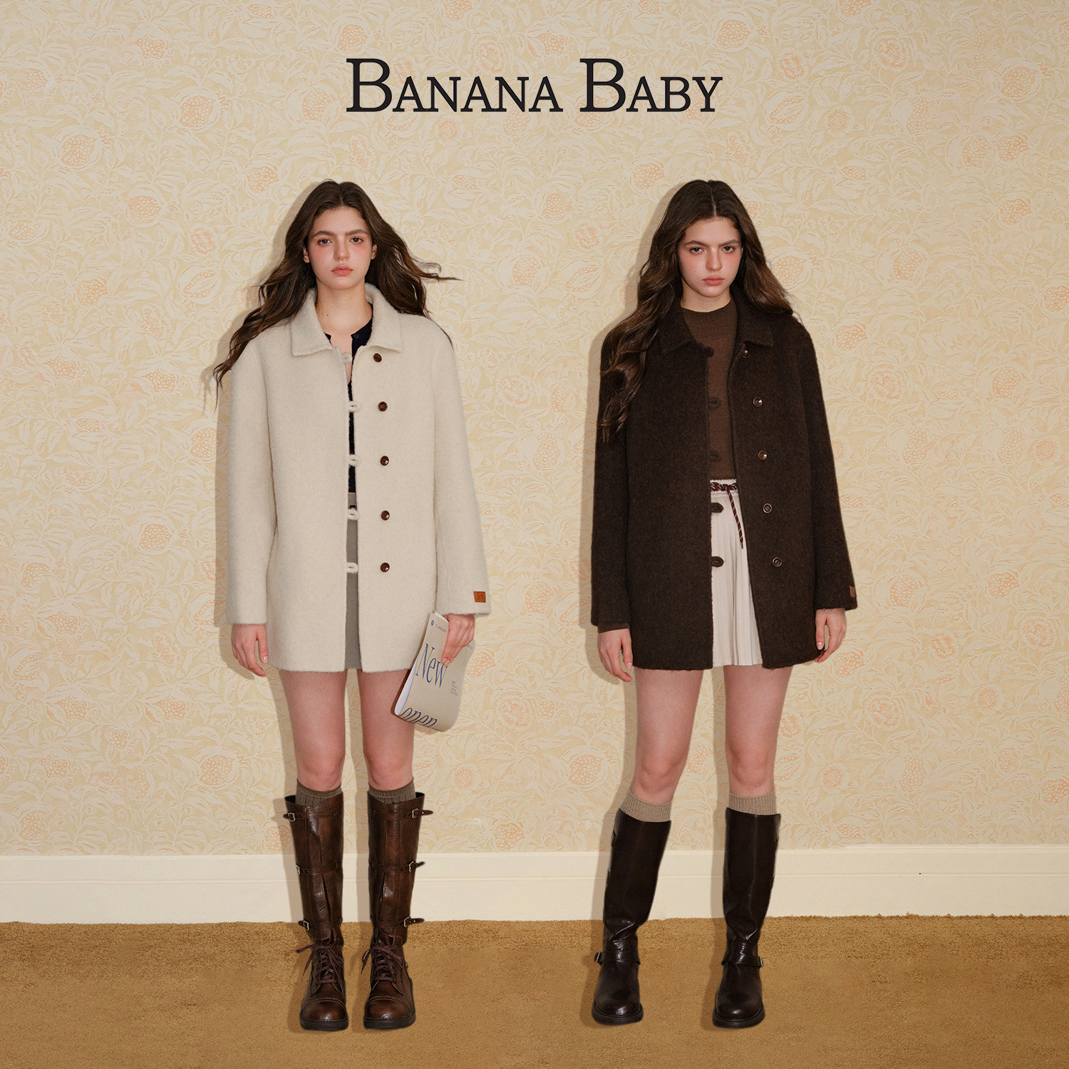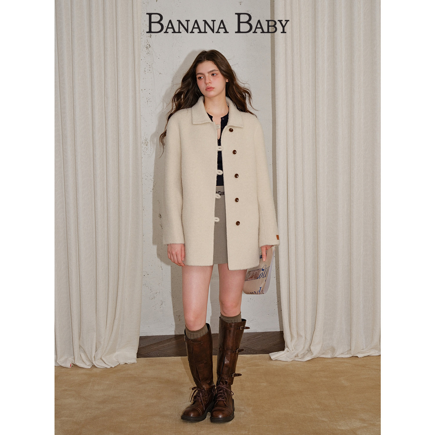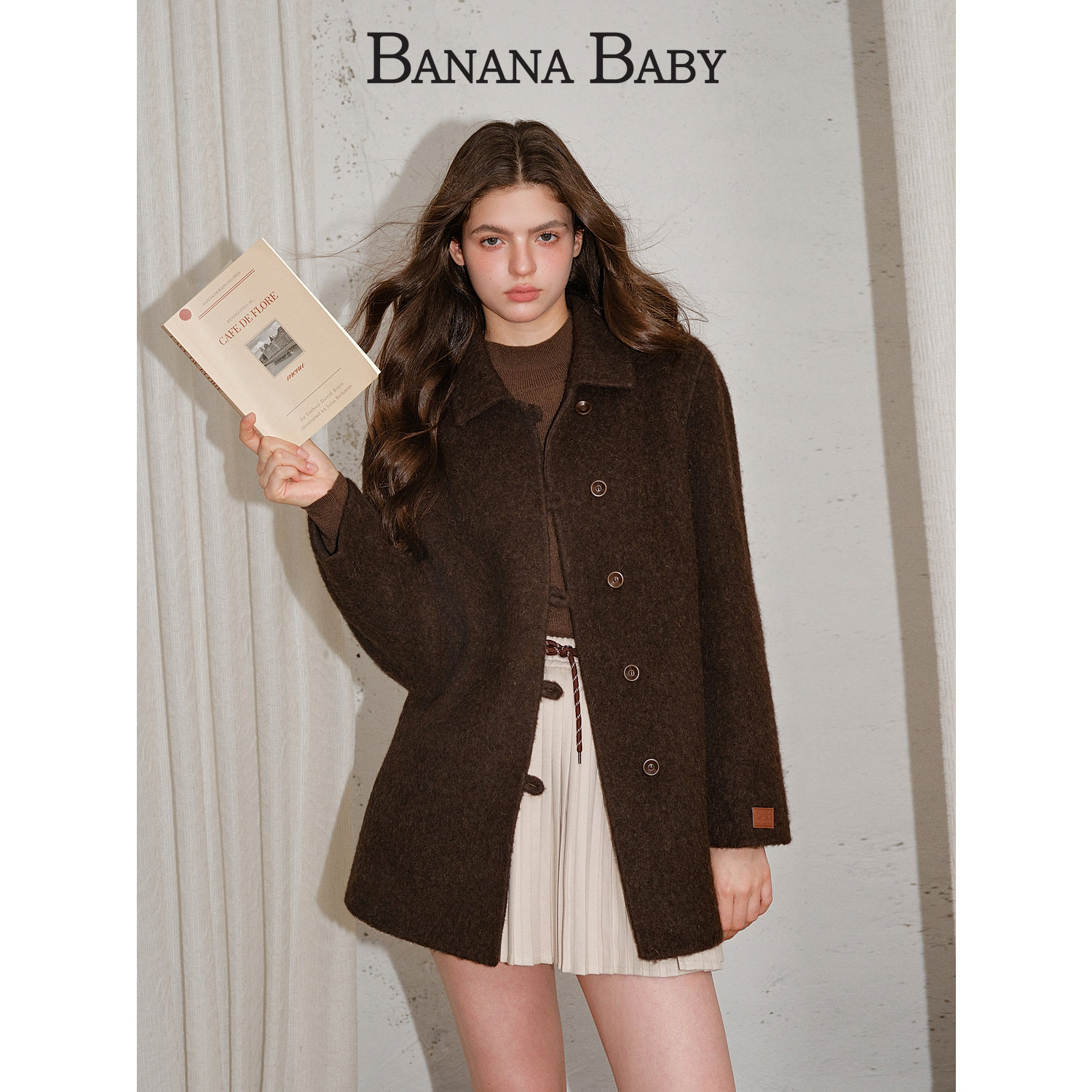 天猫【绵羊毛】BANANA BABY2025年冬新款翻领双面呢大衣女中长款外套