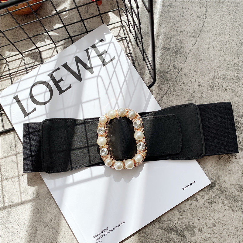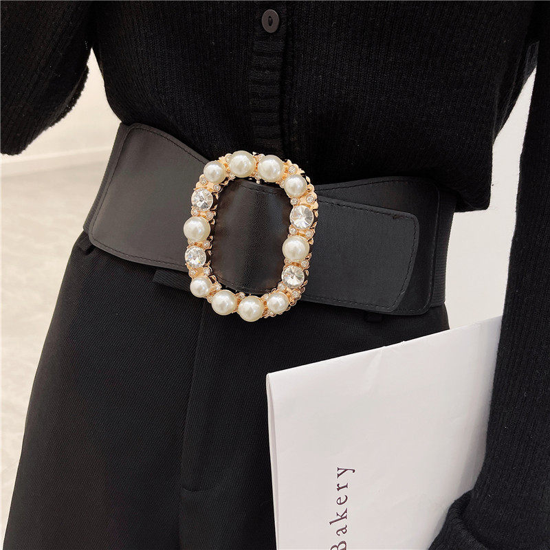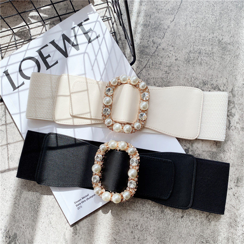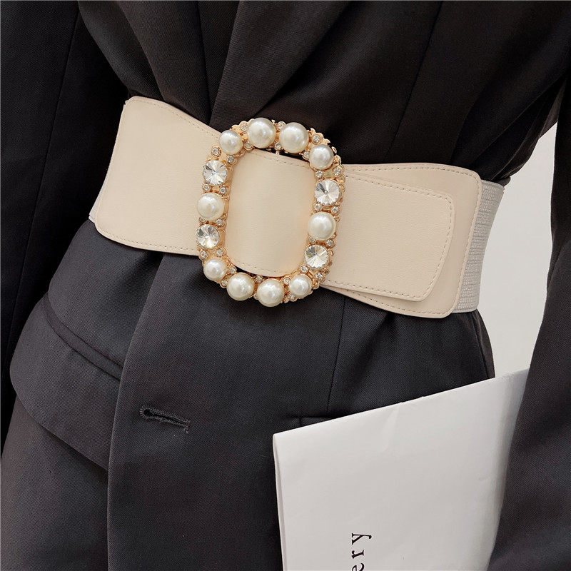 天猫珍珠镶钻高级感腰带女装饰配裙子西装大衣百搭弹力松紧宽腰封外搭