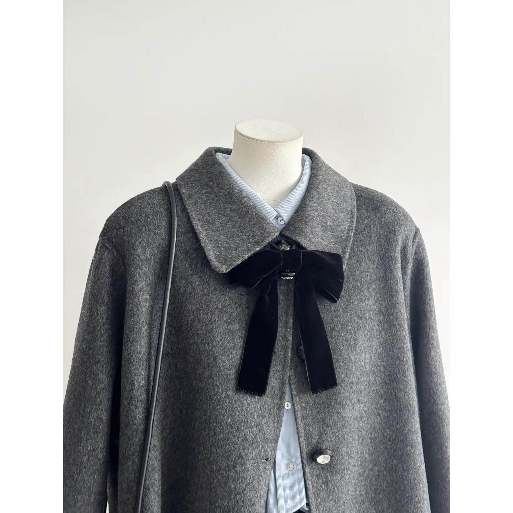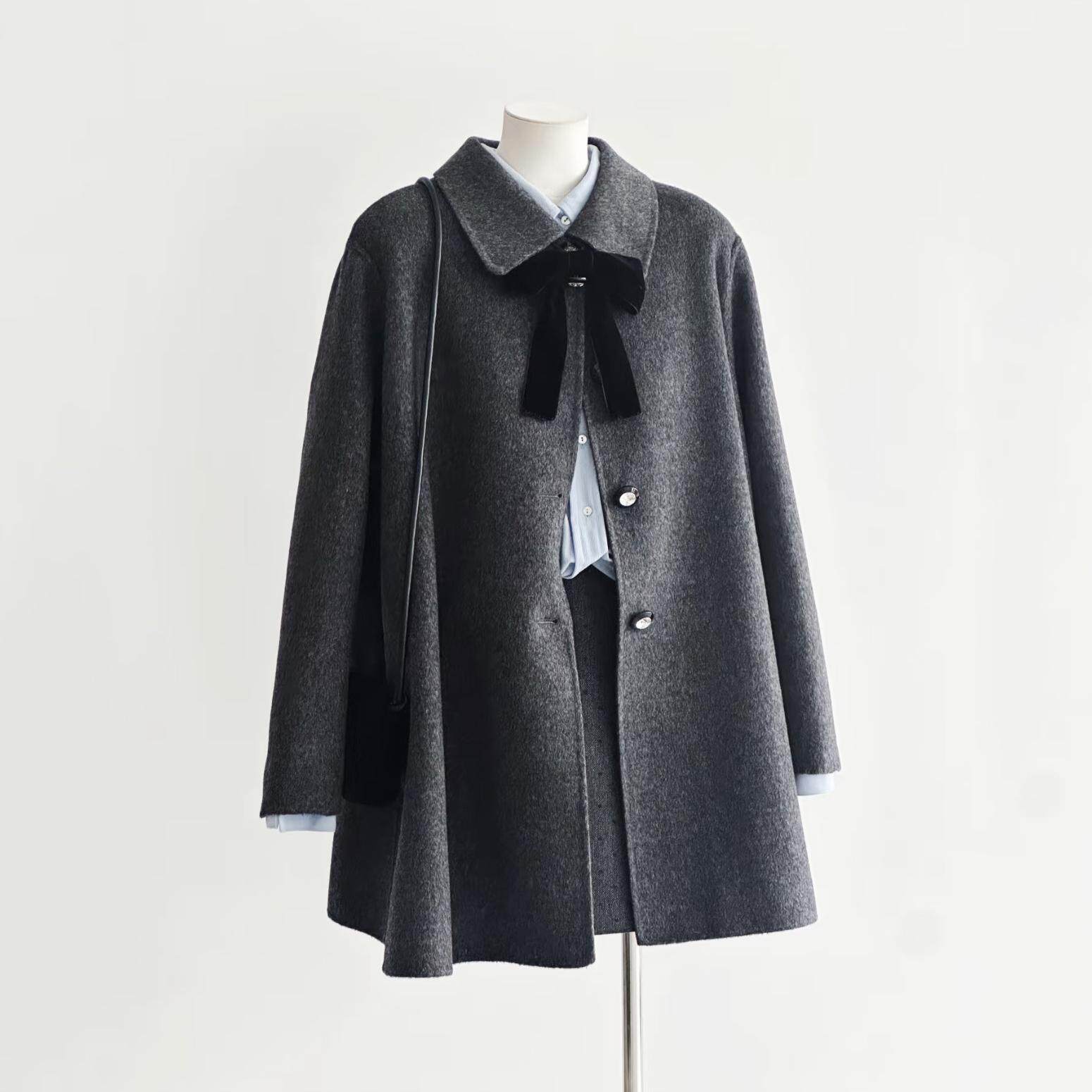 淘宝秋冬女甜美带领结千金风宽松优雅单排扣减龄毛呢羊毛大衣外套ZX09