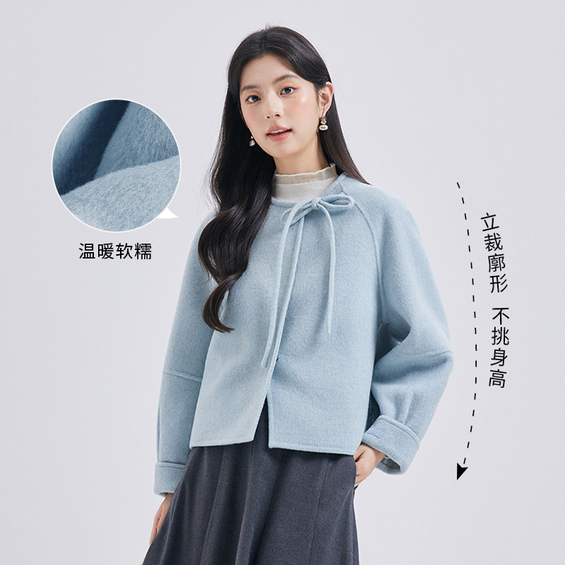 徐莫西法式骆驼绒小香风短款羊毛双面呢大衣女秋冬新款小个子外套