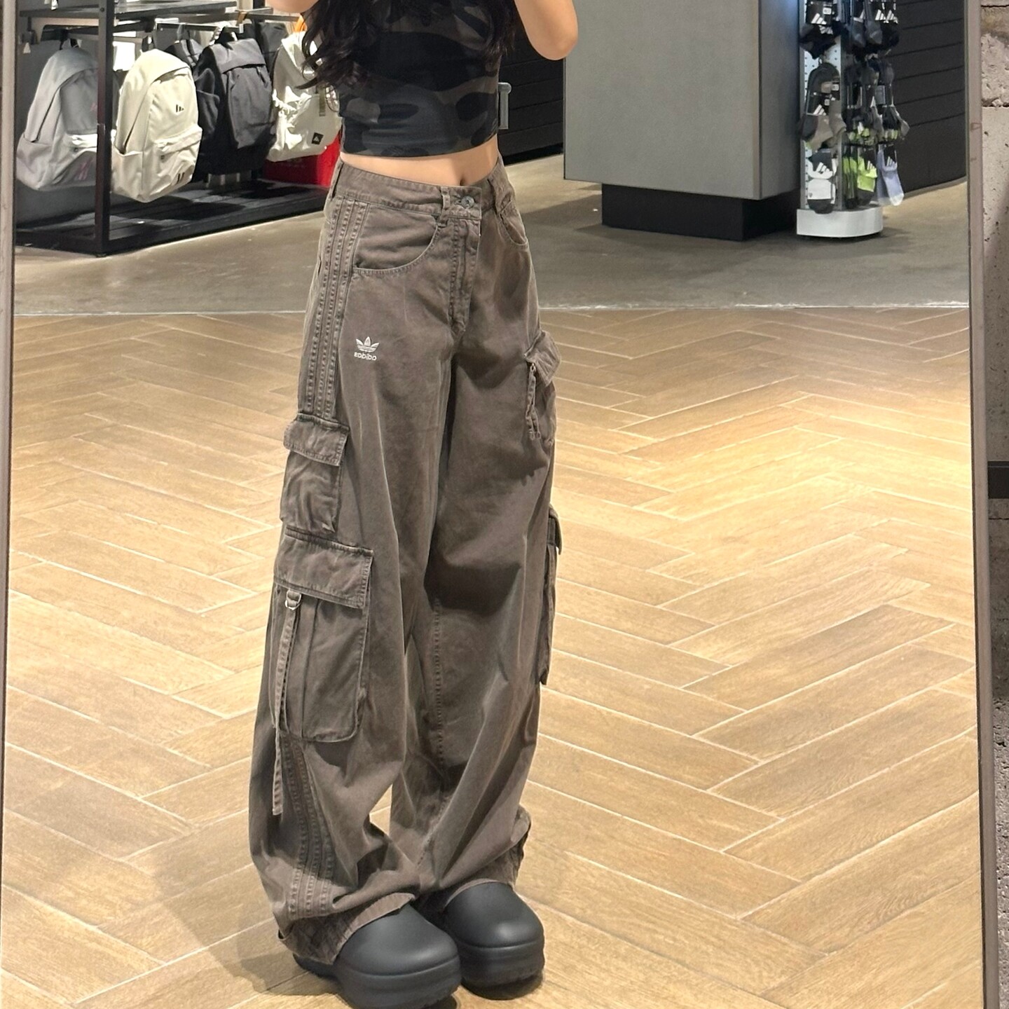 时尚潮流宽松多口袋休闲工装牛仔运动裤女装adidas阿迪达斯三叶草