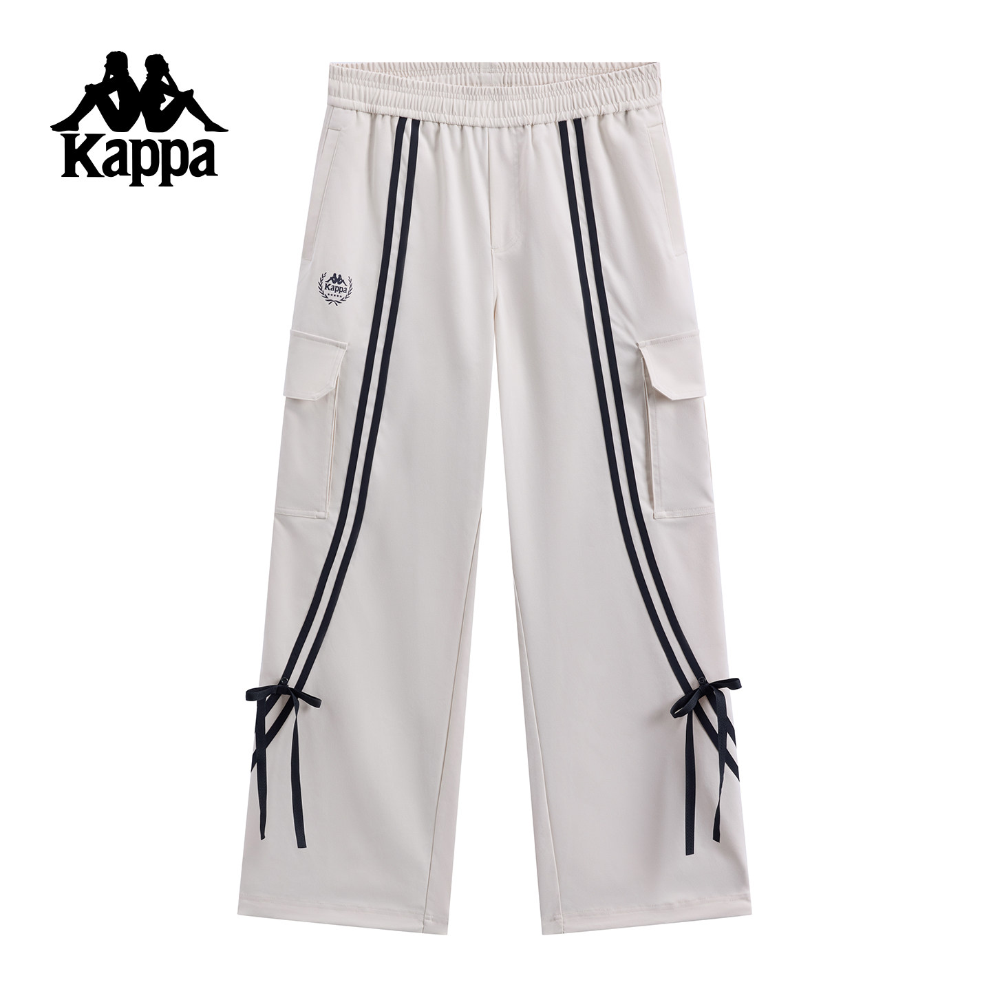 天猫Kappa卡帕女裤2026春季新款时尚条纹蝴蝶结宽松工装长裤K0G22AX01