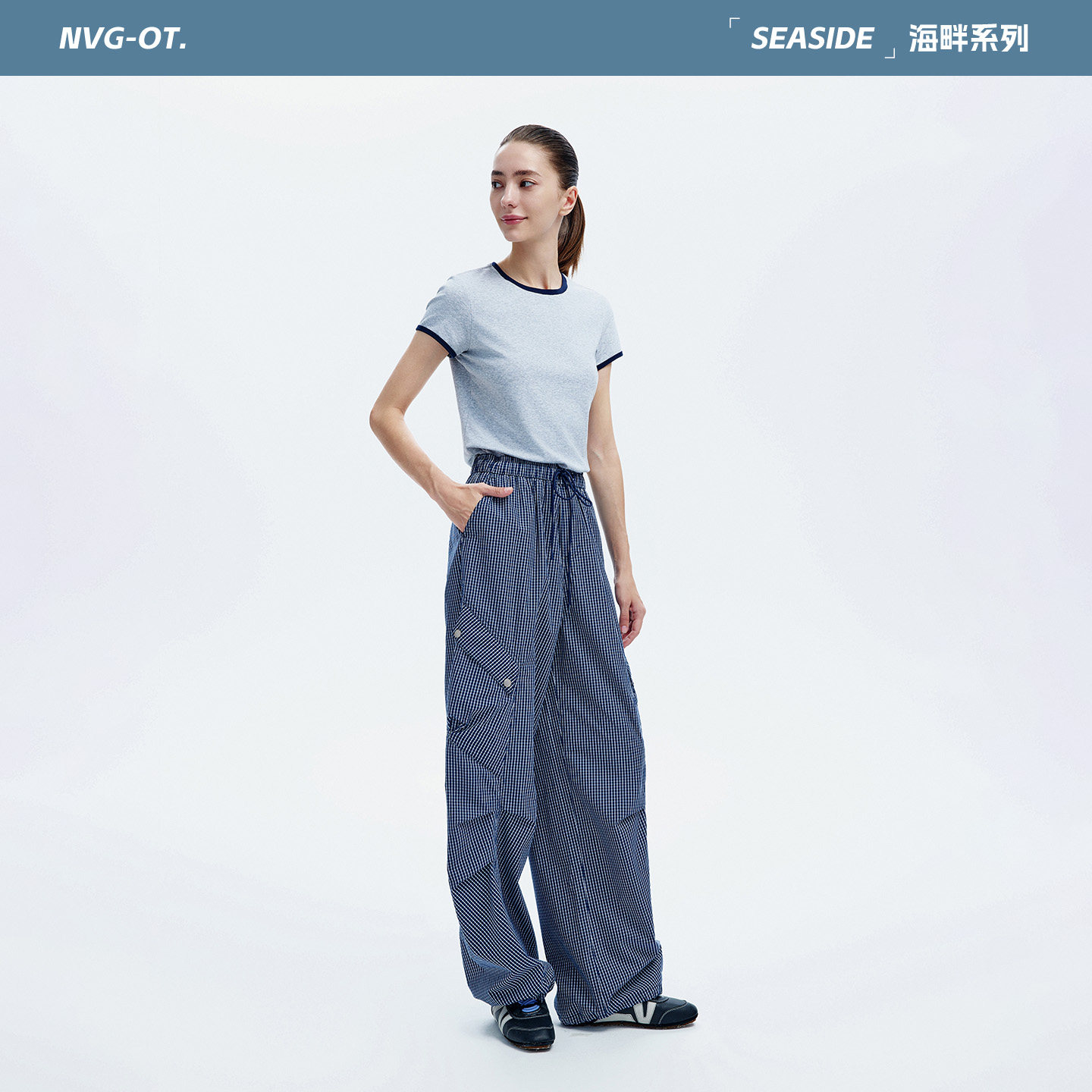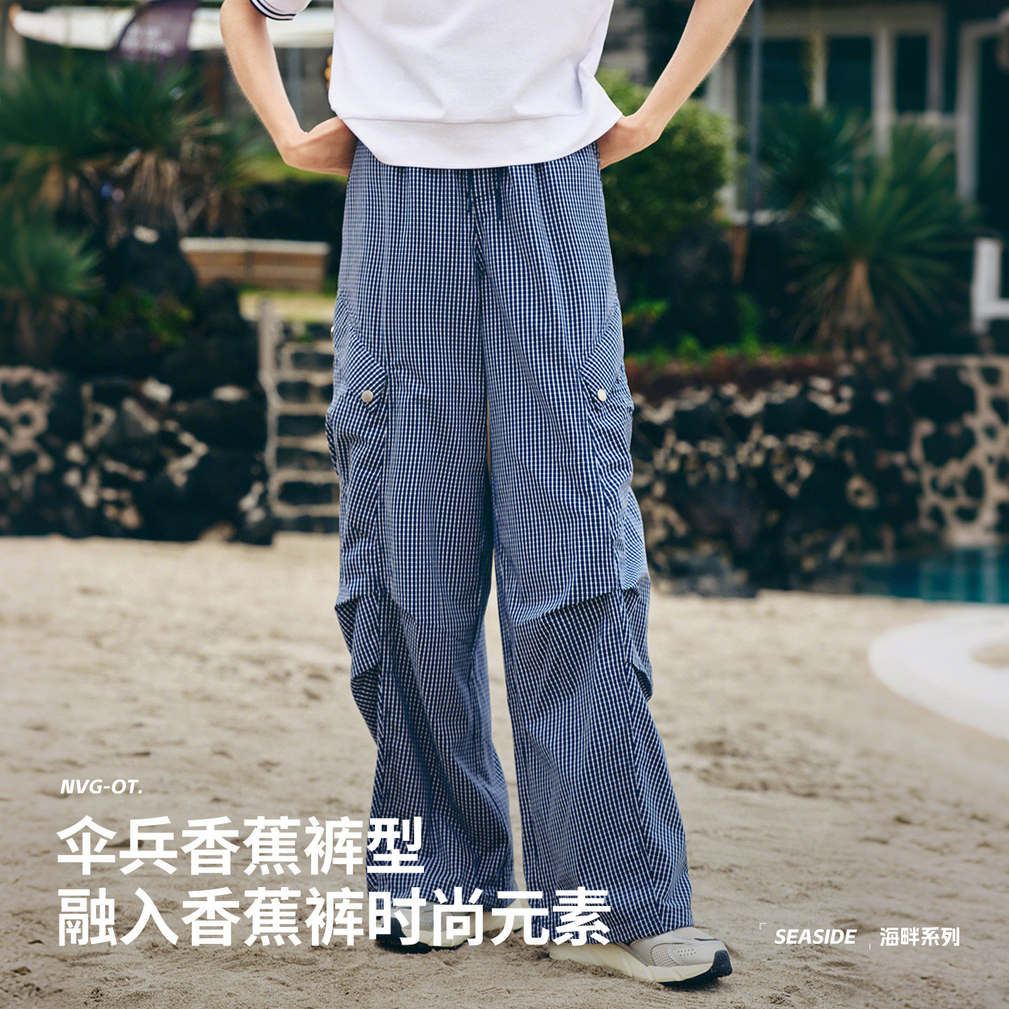 天猫Navigare意大利小帆船格子休闲裤工装伞兵裤女2026春夏新款香蕉裤