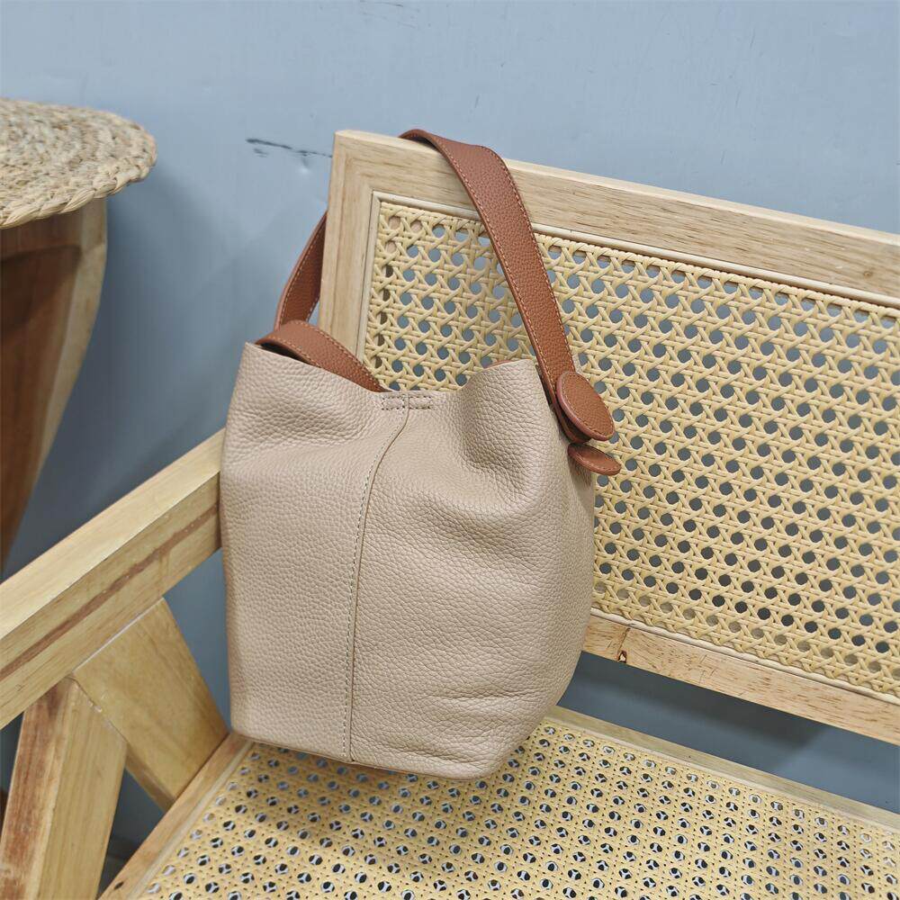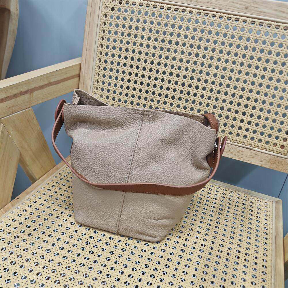 淘宝进口头层牛皮斜挎手提包包女2025新款百搭水桶子母真皮单肩女士包