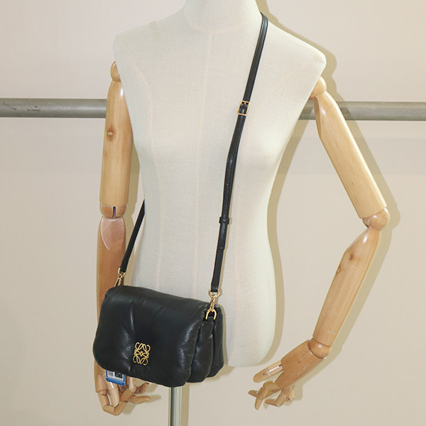 淘宝「9.0新」LOEWE(罗意威)MINI PUFFER GOYA黑色羊皮迷你斜挎包