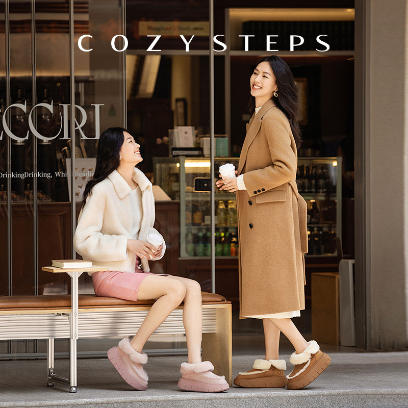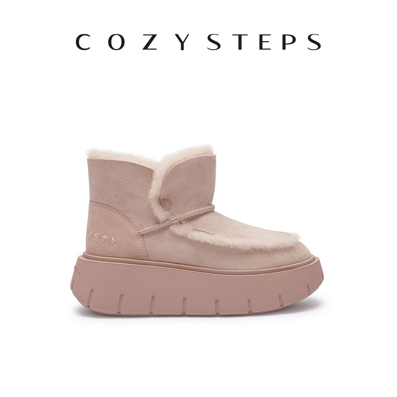 COZY STEPS可至25新女保暖厚底增高雪地靴舒适百搭羊皮毛一体靴子