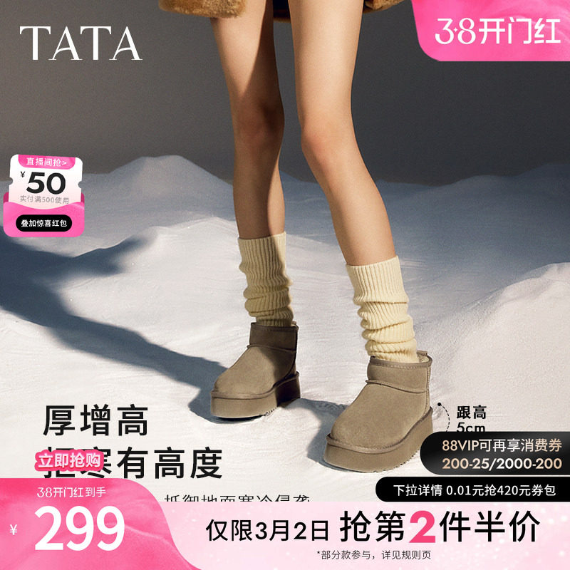 天猫TATA他她面包靴毛毛厚底雪地靴女靴保暖加绒短靴子棉鞋CDE04DD4