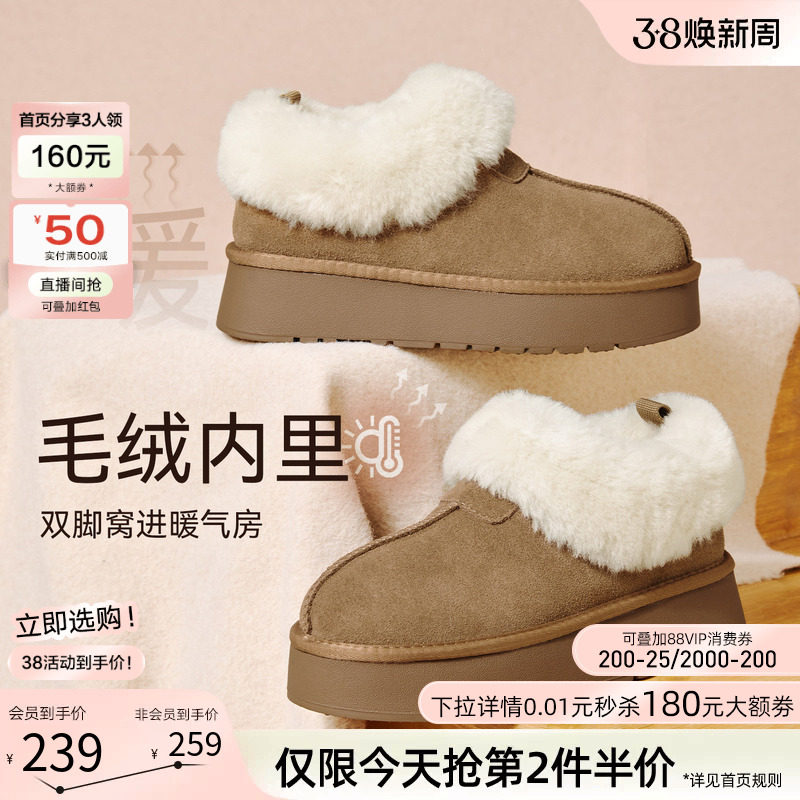 COZY STEPS可至25冬女保暖厚底增高雪地靴舒适百搭羊皮毛一体靴子