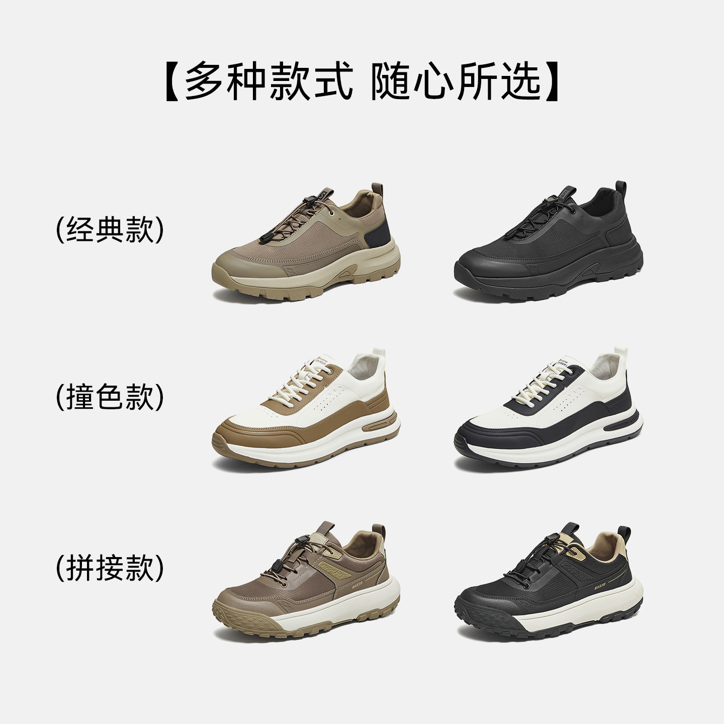 百思图秋季新款潮流男鞋87650CM5,以简约百搭的黑色为主调,融合时尚厚底设计,轻松提升整体造型感。鞋面采用轻便透气材质,有效排出闷热,长时间穿着依然干爽舒适。缓震厚底不仅增强回弹支撑,更带来轻盈行走体验,兼顾运动与休闲场景。防滑耐磨大底确保抓地力,适应多种路面。经典款式搭配精致走线工艺,彰显品质细节。无论是日常通勤、周末出行还是轻运动,这款鞋都能完美适配,展现都市男性利落有型的穿搭态度,是秋季衣橱不可或缺的潮流单品。