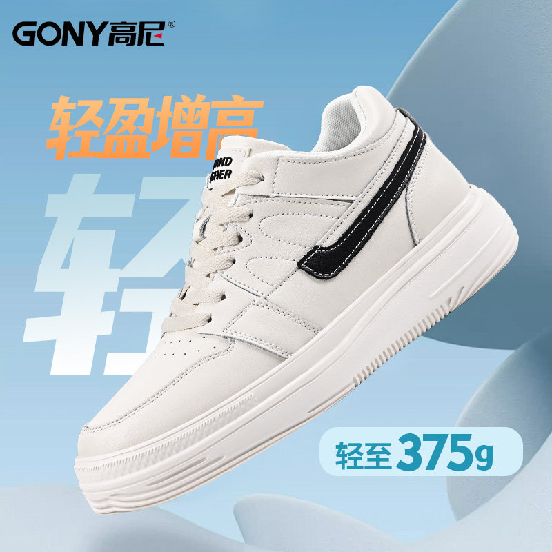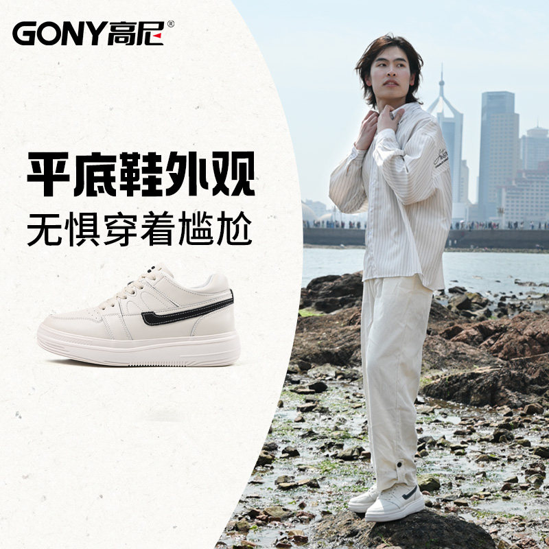 天猫高尼10cm增高鞋男丨米白透气情侣休闲板鞋运动小白鞋厚底轻便男鞋