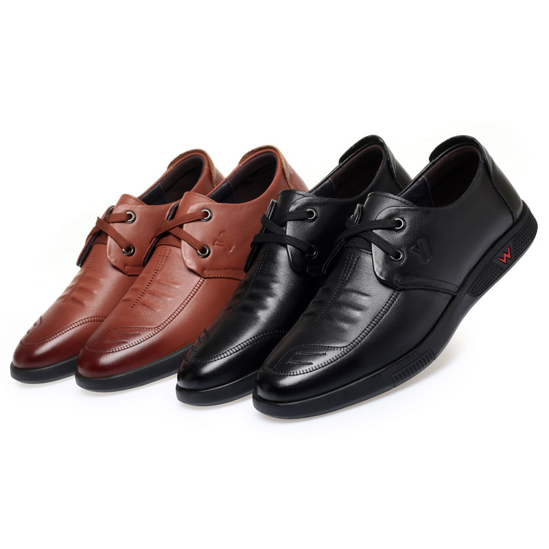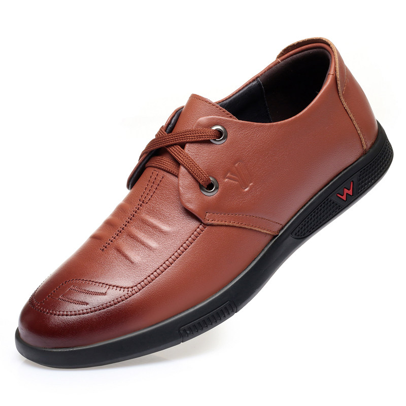 淘宝意尔康男鞋春季真皮休闲皮鞋男软底透气系带中年商务单鞋舒适时尚