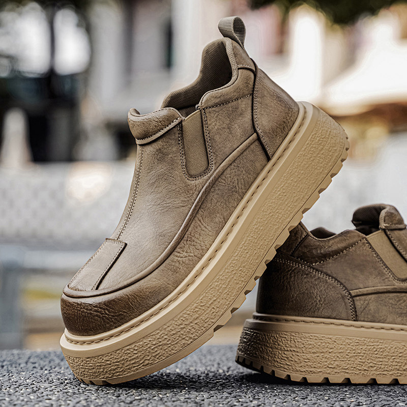 天猫男鞋春季高级感潮流百搭板鞋男士一脚蹬厚底防滑低帮休闲马丁皮靴