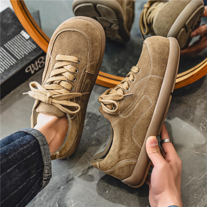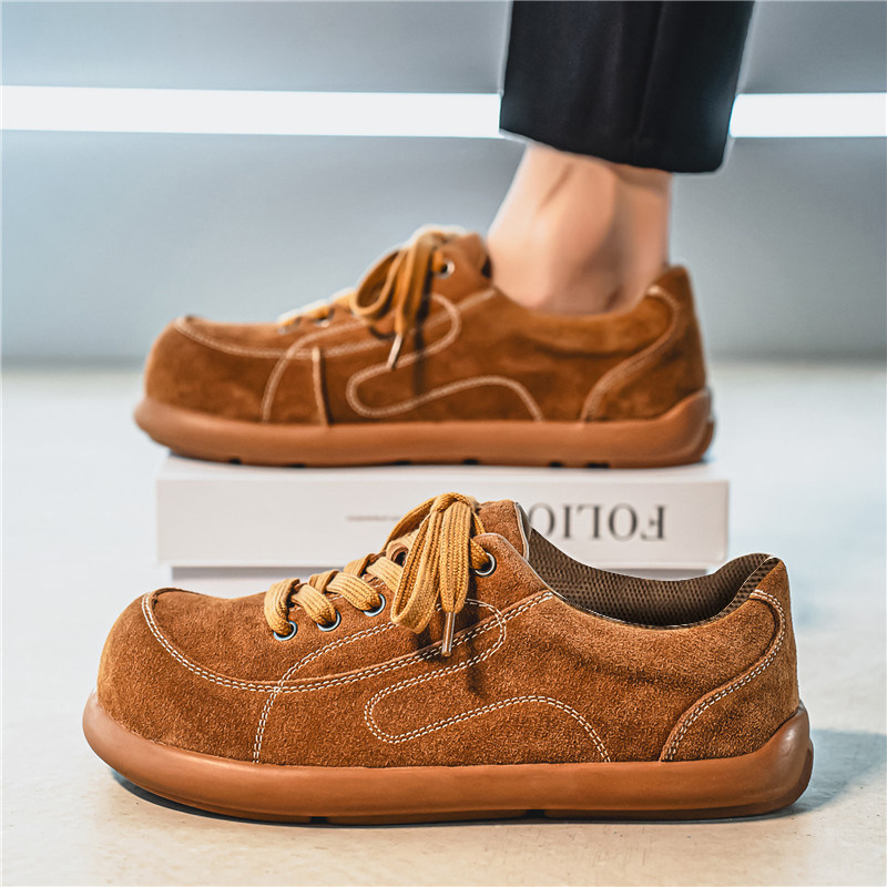 2026年春季新款男士大头休闲板鞋,融合潮流设计与舒适体验,成为型格穿搭的百搭之选。采用优质翻毛皮材质,质感细腻,彰显低调奢华;宽松的大头鞋型搭配厚底设计,不仅拉长腿部线条,更添复古运动气息。灵感源自勃肯与豆豆鞋的舒适理念,内置柔软缓震鞋垫,久穿不累。简约配色轻松驾驭工装裤、牛仔裤或休闲西裤,适配日常通勤、周末出游等多种场景。无论是街头潮流还是轻复古风格,这款鞋都能完美融入,是2026年春季男士衣橱不可或缺的时尚单品。