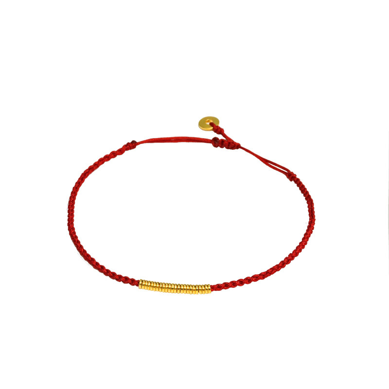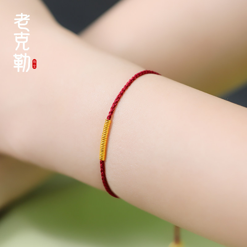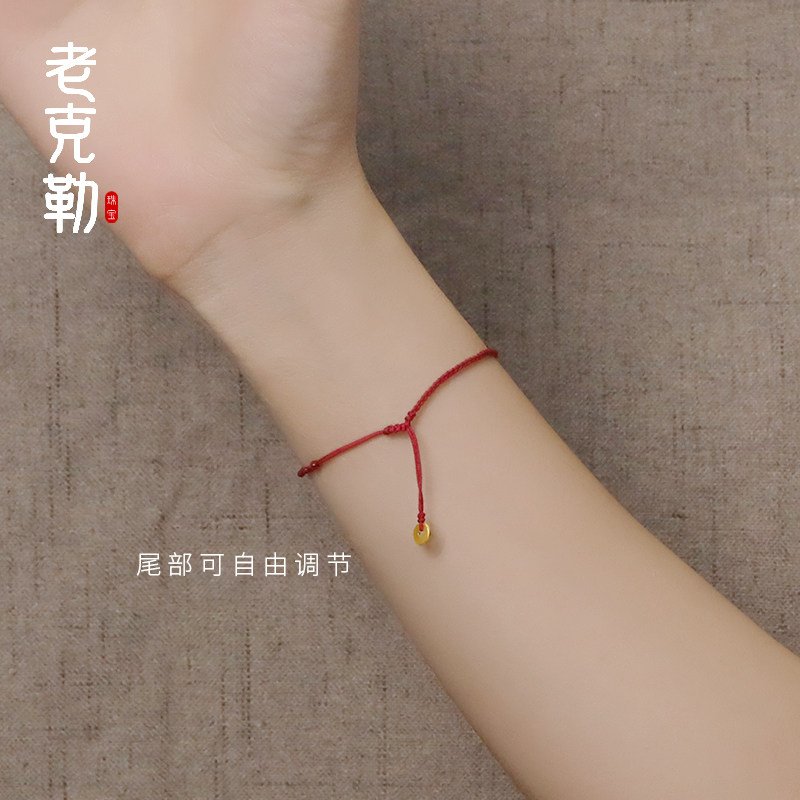 淘宝老克勒黄金红绳手链王星越同款小孩哥手绳足金圈编织中国风手饰女