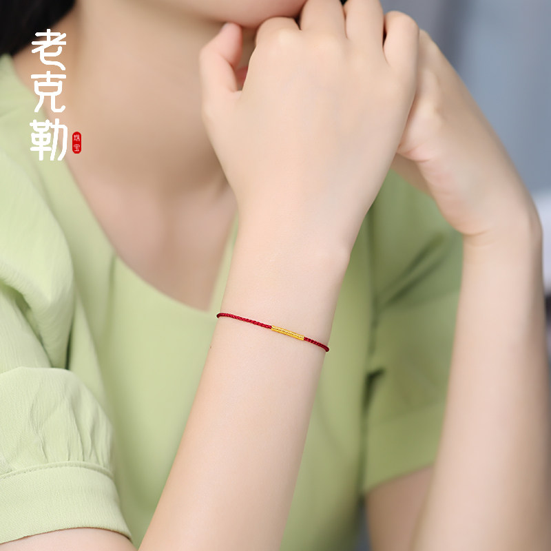 老克勒黄金红绳手链,以足金圈与精致红绳巧妙编织,融合传统中国风与现代时尚美学。灵感源自王星越同款“小孩哥”手绳,简约中透出高级质感,寓意平安吉祥、福运绵长。黄金圈采用高纯度足金打造,光泽温润,不易氧化;红绳选用优质丝线,结实耐磨,佩戴舒适。整体设计小巧精致,适合女性日常搭配,亦可作为情侣款或亲子款佩戴。无论是自用还是赠礼,皆显心意与品味。这款手链不仅是一件饰品,更承载着东方文化的深厚底蕴与美好祝愿,是时尚与传统完美结合的典范之作。