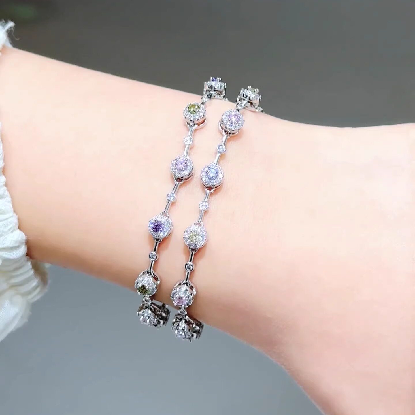 天猫旭平彩宝系列璀璨圆形手链女镶嵌人造石手饰轻奢精致高级感送女友