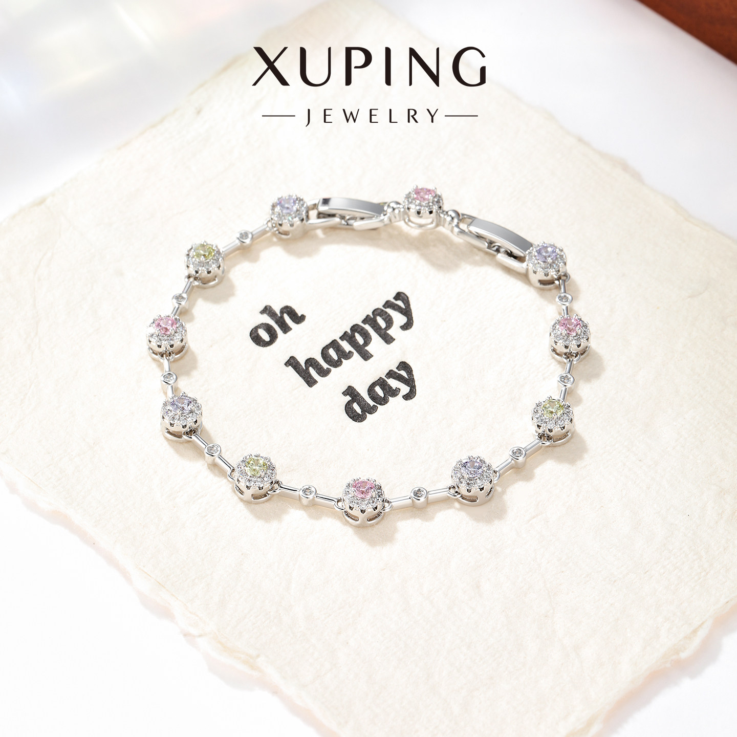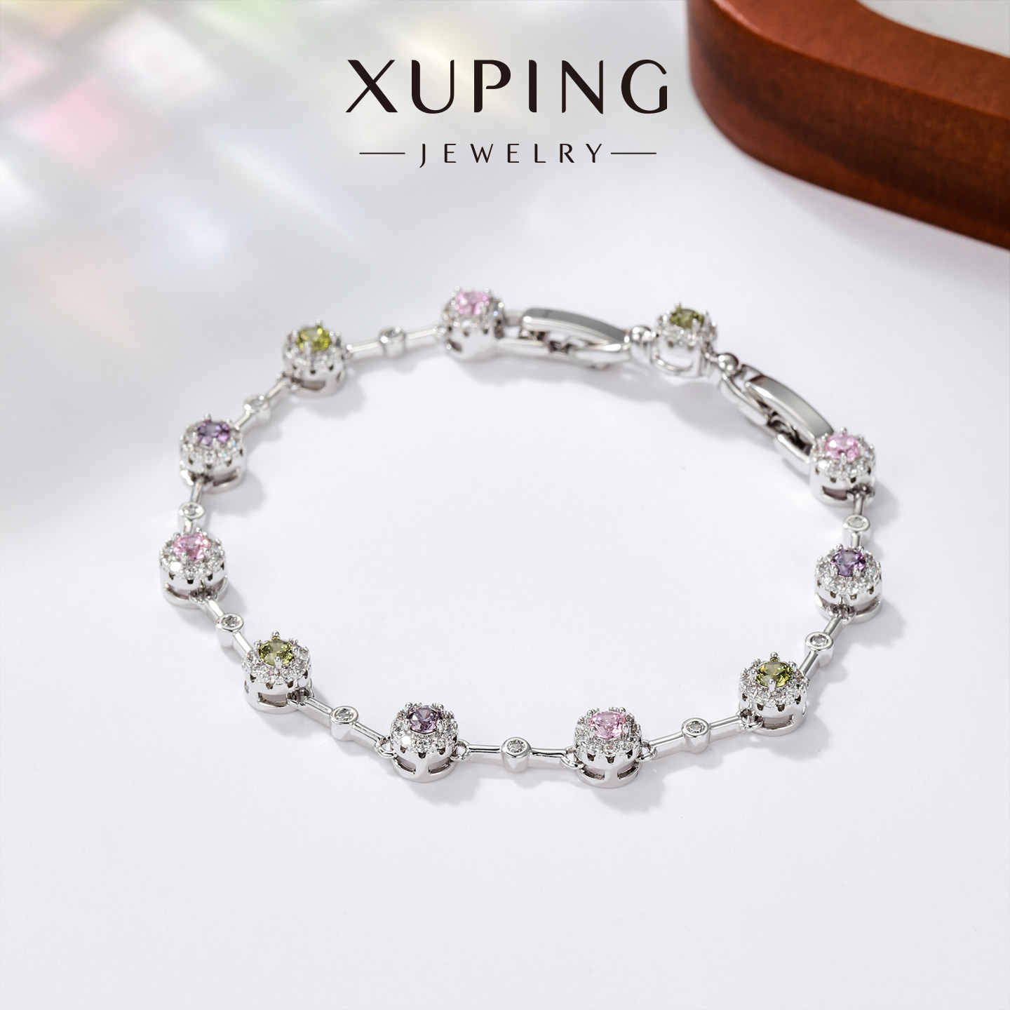 旭平彩宝系列璀璨圆形手链,以轻奢设计诠释高级质感,专为现代女性打造。精选高品质人造彩宝,颗颗晶莹剔透,色彩绚丽,在光线下折射出迷人光芒。圆形切割工艺精湛,镶嵌于细腻金属链条之上,线条流畅,佩戴舒适。整体造型简约而不失精致,既适合日常搭配,亦能点缀重要场合。无论是通勤、约会还是聚会,都能为腕间增添一抹优雅与自信。作为送女友的贴心礼物,它不仅传递心意,更彰显品味与格调。旭平彩宝手链,用璀璨光芒见证每一个美好瞬间,是爱与美的完美象征。