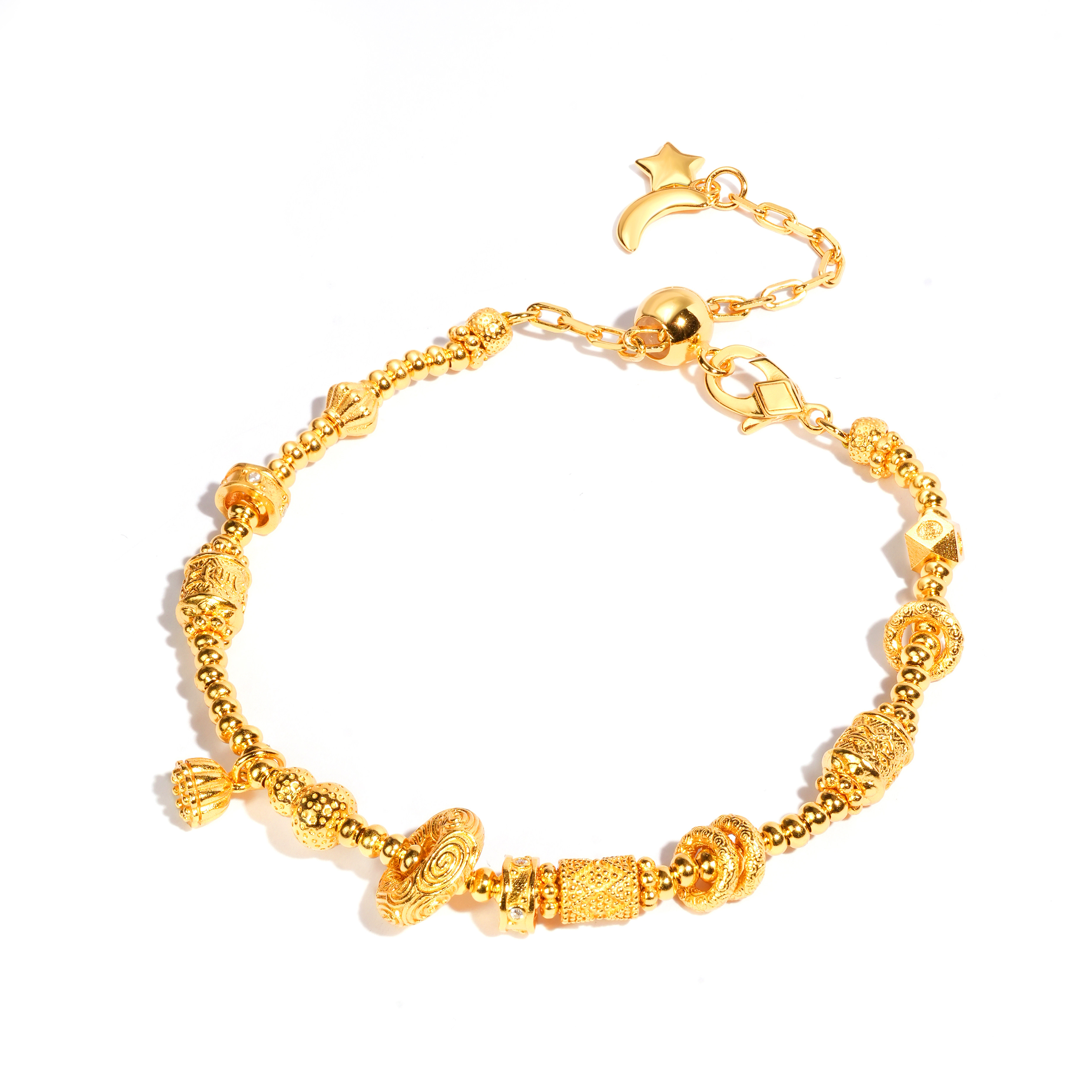 淘宝VISING珠宝古法S925银星月金盘缠手链手饰