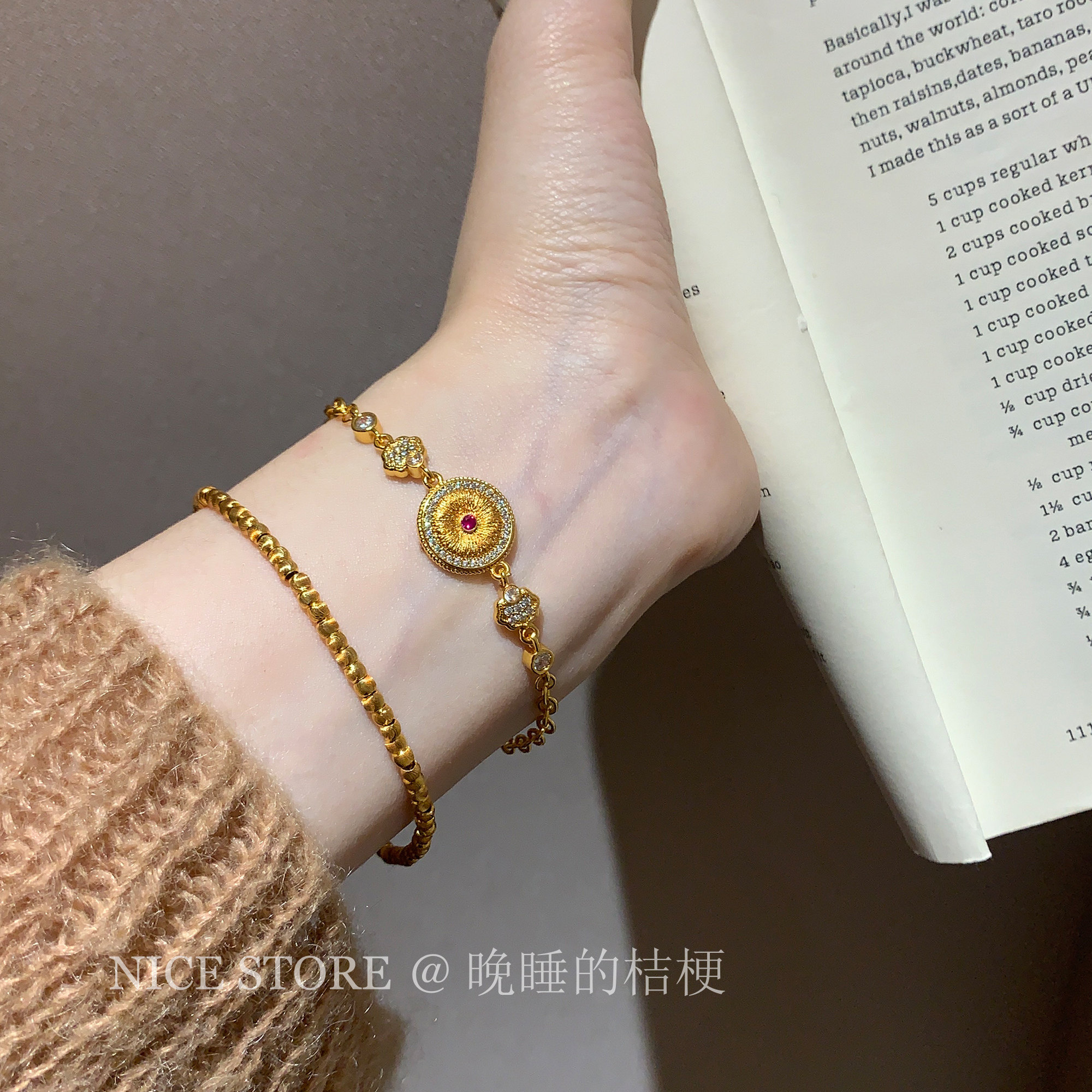 淘宝晚睡的桔梗「岁岁平安」古法拉丝镶钻如意平安扣手链新中式手饰