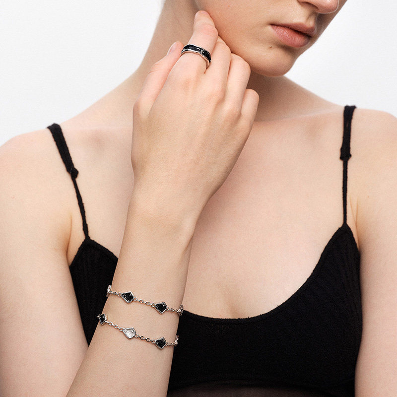 天猫[王皓祯同款]OINICIO初印沉积系列不规则黑白滴胶手链情侣手饰
