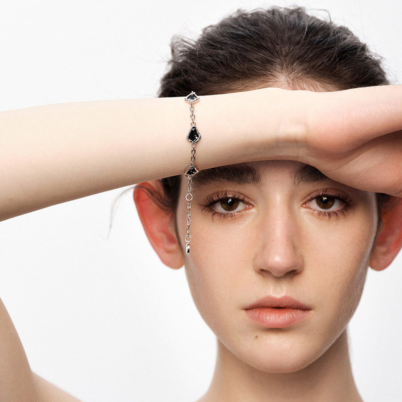 【王皓祯同款】OINICIO初印沉积系列不规则黑白滴胶手链,以极简美学诠释现代情侣风尚。灵感源自自然沉积岩层,黑白双色交融于透明滴胶之中,形成独一无二的不规则纹理,象征恋人之间不可复制的羁绊。轻盈佩戴舒适,兼顾个性与质感,适合日常搭配或作为定情信物。男女同款设计,可单独佩戴亦可成对搭配,低调中彰显默契。无论是约会、纪念日还是日常表达爱意,这款手链都是理想之选。OINICIO坚持匠心工艺,每一颗滴胶都经手工灌注,细节之处尽显品质,为爱注入艺术温度。