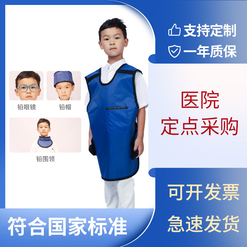 儿童铅衣X射线防辐射服专为儿童设计,采用高纯度铅橡胶材料,有效屏蔽X射线及γ射线辐射,适用于放射科、CT检查、牙科拍片及介入手术等医疗场景。整套防护装备包含铅衣、防护帽、铅围脖等,全面保护甲状腺、性腺及敏感器官,尤其注重儿童头部与躯干的防护。产品轻量化设计,穿着舒适,不影响活动,兼顾安全性与实用性。符合国家医用防护标准,广泛用于儿科影像检查中,为儿童提供可靠的辐射防护,降低长期辐射暴露风险,是医疗机构和家庭保障儿童健康的重要防护工具。