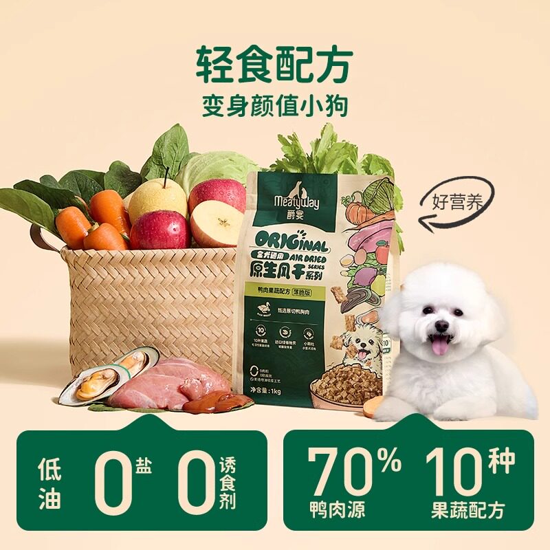 Meatyway爵宴薄脆风干犬粮小鸭粒,精选优质鸭肉为主料,采用低温风干工艺,锁住营养与肉香,口感薄脆易咀嚼,满足狗狗天性食肉需求。全价配方科学均衡,富含优质蛋白、维生素与矿物质,支持免疫系统与关节健康。无谷物添加,降低致敏风险,呵护敏感肠胃。小颗粒设计适合中小型犬,亦可用于训练奖励。天然风味不添加人工诱食剂,让爱犬吃得健康又开心。Meatyway致力于为宠物提供高品质、安全可靠的营养之选,是追求天然健康喂养的铲屎官理想之选。