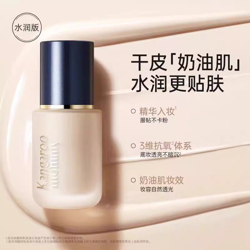 淘宝袋鼠妈妈燕窝粉底液准孕妇孕妈可用深润保湿水润版精粹彩妆丝绒