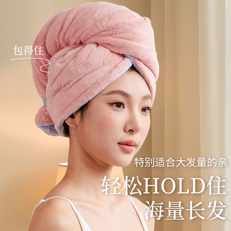 天A发帽女吸水速干擦头干发毛巾包边双面可用加厚成人女双层速干帽