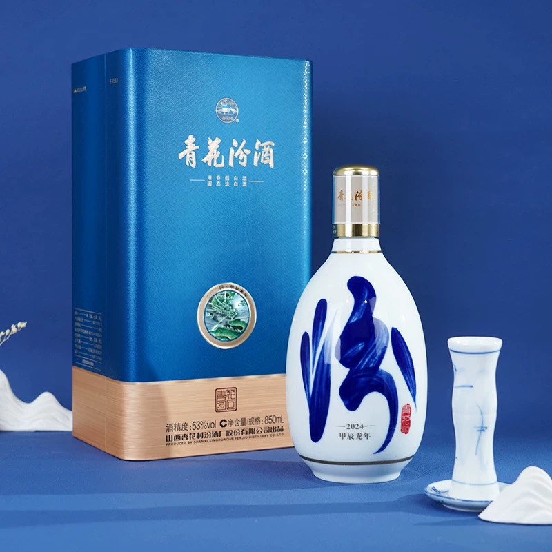 天猫【龙年生肖】山西杏花村汾酒53度青花30大兰龙850ml*1盒 收藏白酒