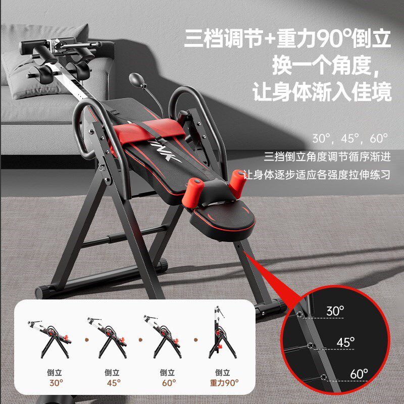 倒立机家用健身器材是一款集牵引、拉伸、倒挂功能于一体的智能健身神器,专为缓解腰背疲劳、改善体态设计。通过安全倒立姿势,有效拉伸脊椎间隙,减轻椎间盘压力,缓解久坐带来的腰酸背痛。内置多角度调节与防滑护垫,适合不同身高用户,操作简单,居家即可享受专业牵引理疗。倒立还能促进血液循环,增强核心肌群,提升平衡力。一体机设计节省空间,稳固支架确保使用安全。无论是办公族、运动爱好者,还是中老年人,倒立机都是日常放松与康复训练的得力助手,让健康触手可及。