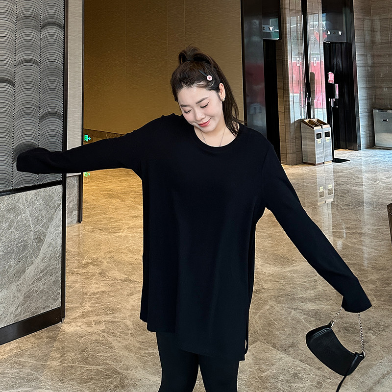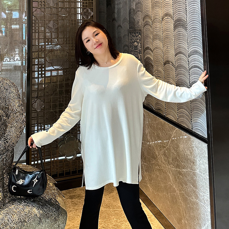 天时然大码微胖MM26年冬新款亲肤抑菌磨毛T恤假两件长袖针织打底衫