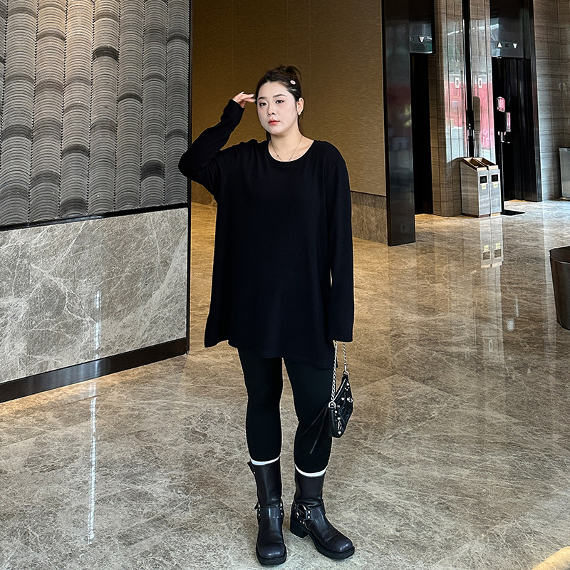 淘宛宛大码女装春秋季新款U领宽松面膜T恤胖mm打底衫内搭长袖上衣潮
