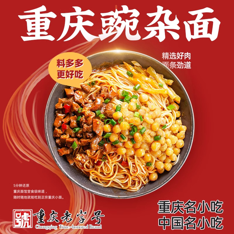 重庆小面豌杂面,地道山城风味,280g×3盒装,非油炸更健康!精选优质小麦粉制成劲道面条,搭配秘制麻辣酱料与醇香豌杂,还原重庆街头巷尾的经典味道。豌豆软糯入味,杂酱浓郁鲜香,红油辣而不燥,麻味恰到好处,一口下去香辣过瘾,回味无穷。无需复杂操作,热水冲泡或简单煮制即可享用,方便快捷。无论是忙碌工作日的快手餐,还是深夜解馋的宵夜,都能满足你对正宗重庆味道的渴望。地道重庆特色美食,足不出户,畅享麻辣江湖!