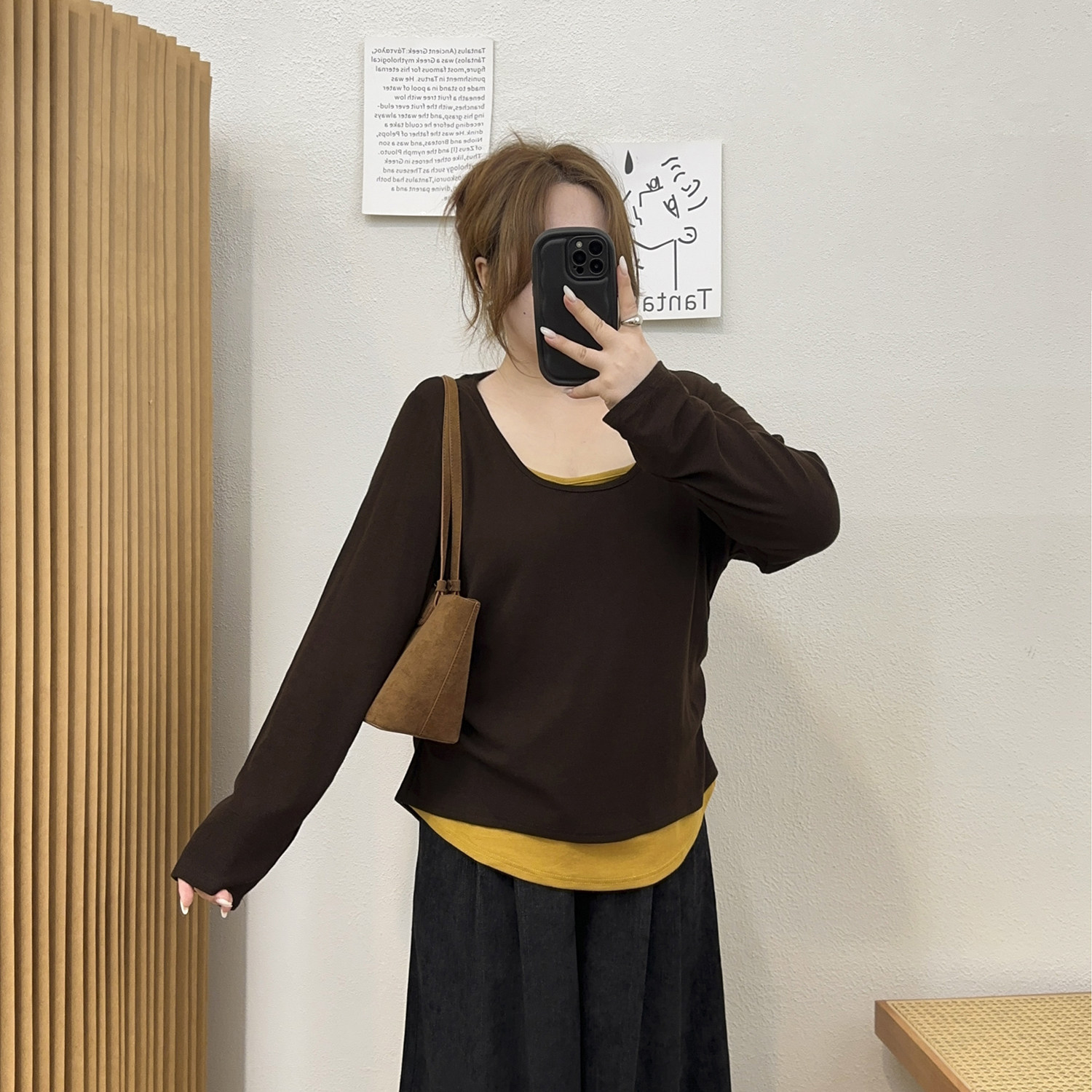 宛宛大码胖MM别致撞色假两件长袖T恤,专为自信辣妹打造。采用宽松舒适版型,巧妙修饰身形,包容性强,适合多种体型。撞色设计层次分明,假两件剪裁增添视觉亮点,个性十足又不失时尚感。精选柔软亲肤面料,透气耐穿,秋季内搭或单穿皆宜。无论是搭配牛仔裤、短裙还是外套,都能轻松驾驭,展现慵懒又带点小性感的辣妹风格。细节走线工整,领口、袖口加固处理,耐洗耐穿。宛宛大码系列,让每一位女生都能穿出属于自己的光芒,舒适与美貌并存,做秋日里最亮眼的存在。