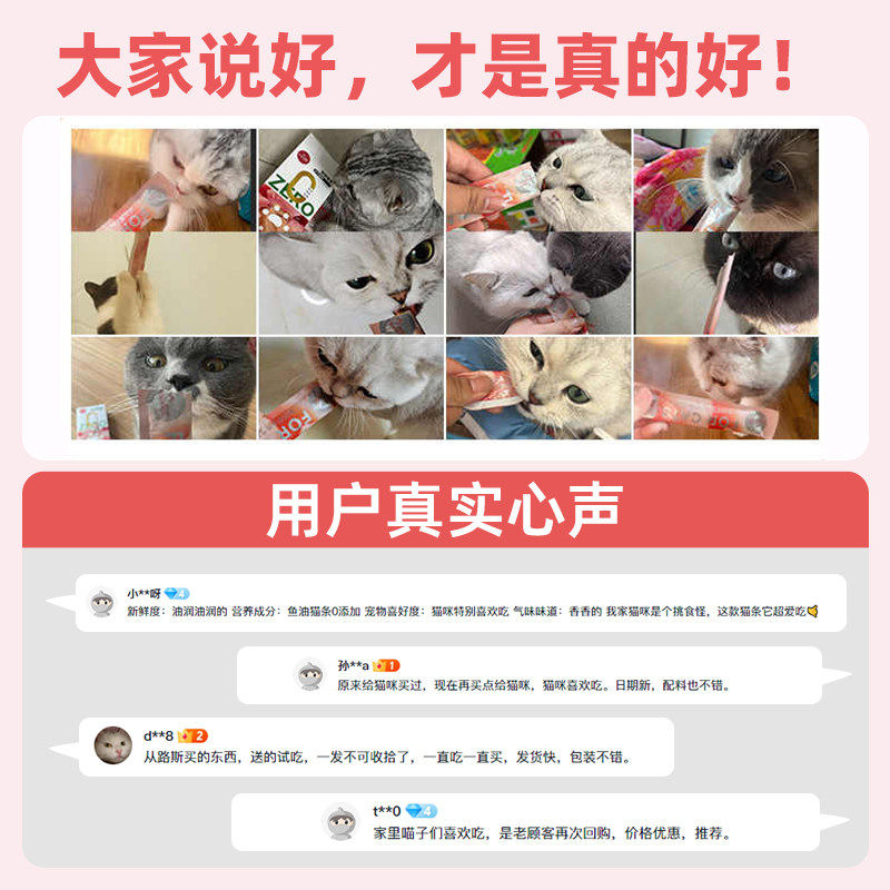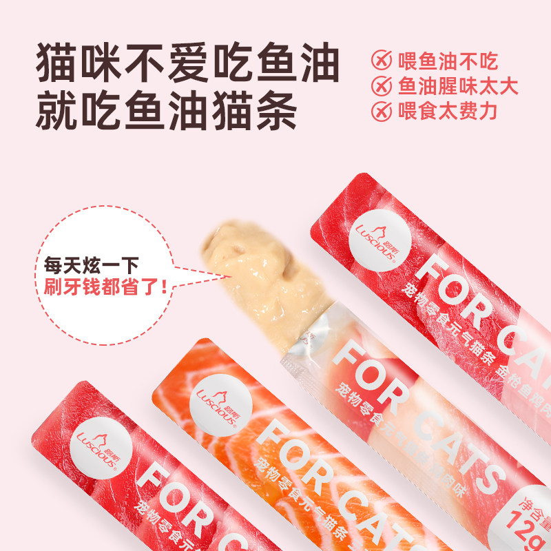 天猫路斯鱼油猫条100支整箱猫咪零食成幼猫营养主食猫罐头无害添加剂