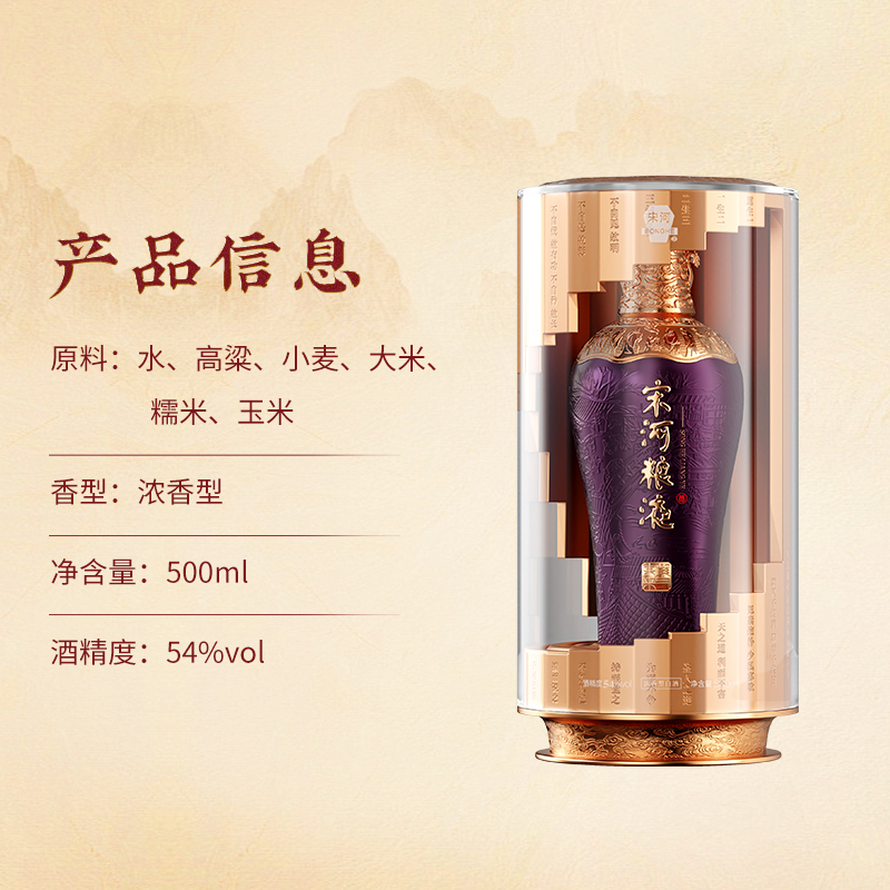 天猫宋河粮液 紫气东来 54度500ml礼盒装浓香型纯粮白酒收藏送礼宴请