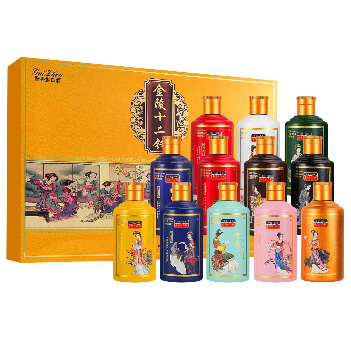 天猫金陵十二钗酱香型53度白酒125ml*12礼盒装小瓶粮食酒收藏版珍藏