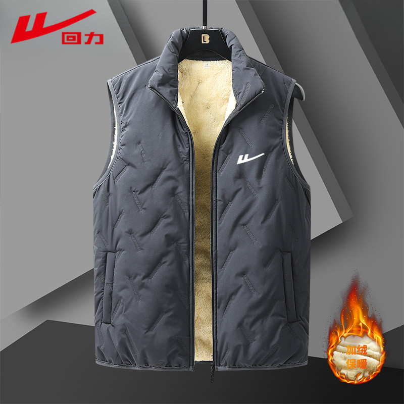 淘宝回力冬季加绒时尚百搭休闲羊羔绒马甲舒适防寒男女款时尚保暖外套