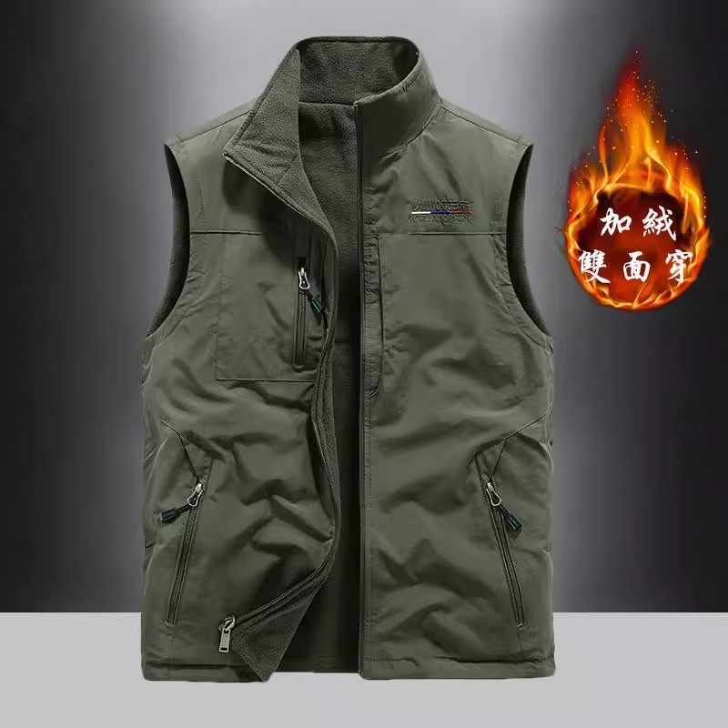 淘宝春夏秋冬季加绒男女同款双面穿马甲休闲多袋工装户外坎肩背心外套