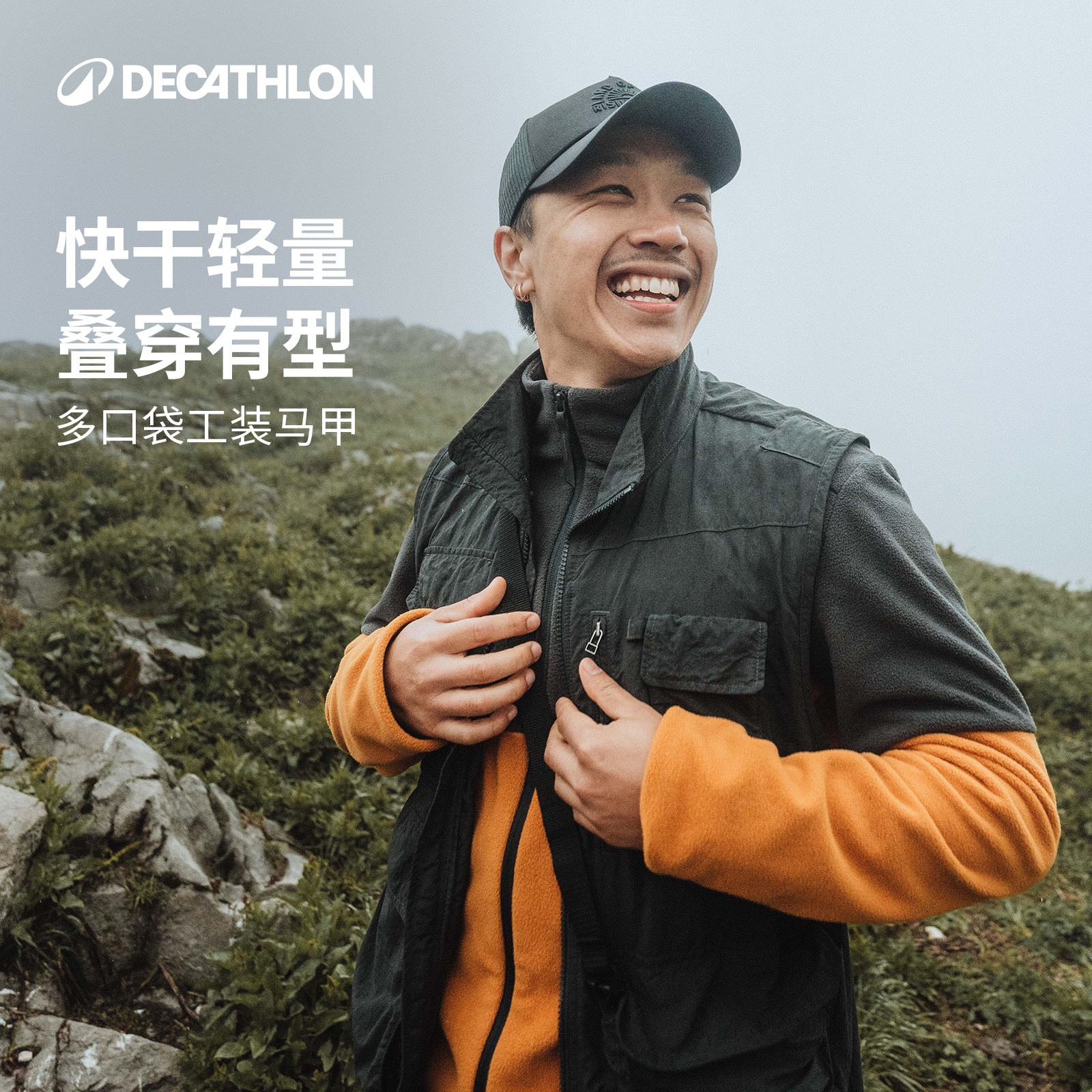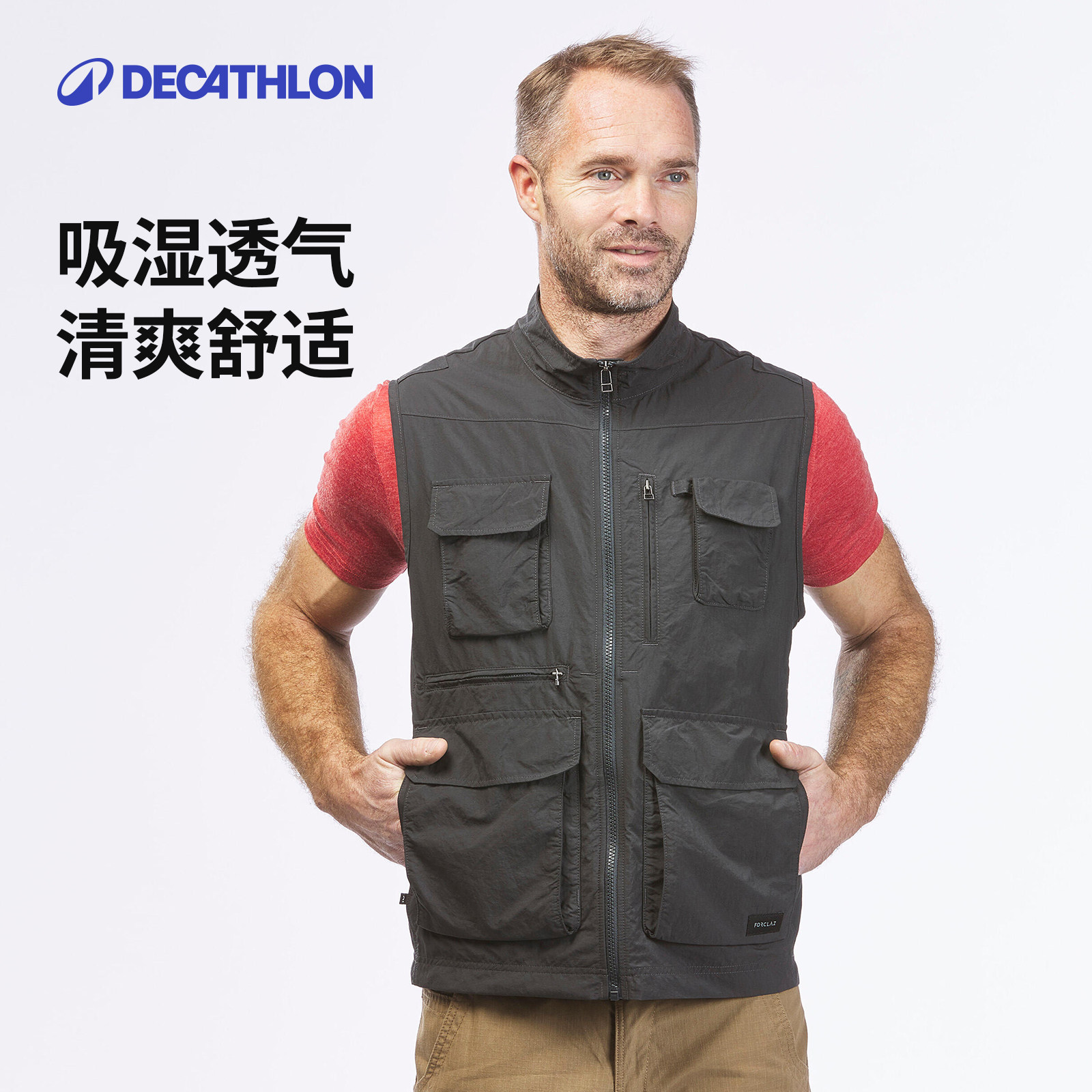 天猫迪卡侬男士多口袋徒步马甲OD
