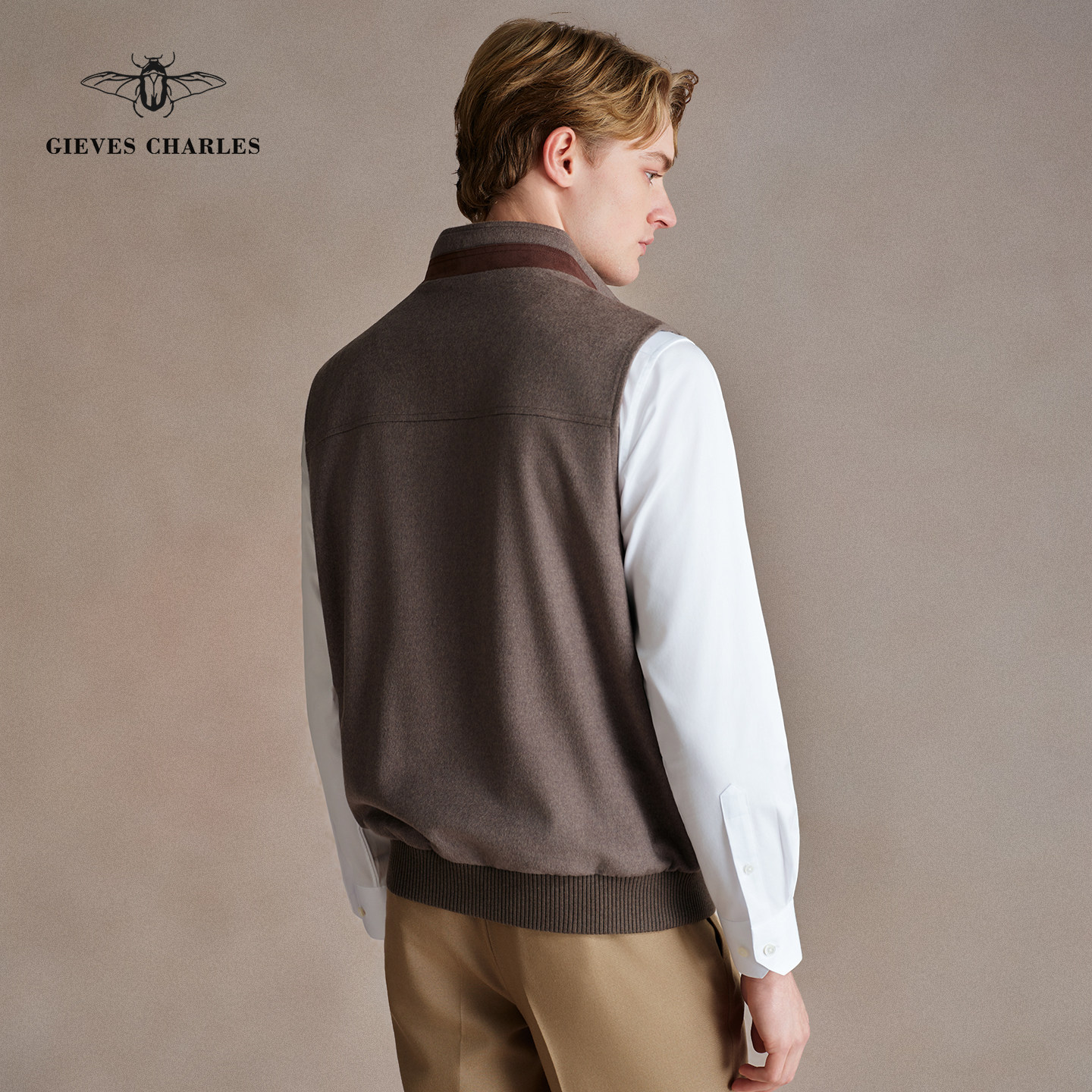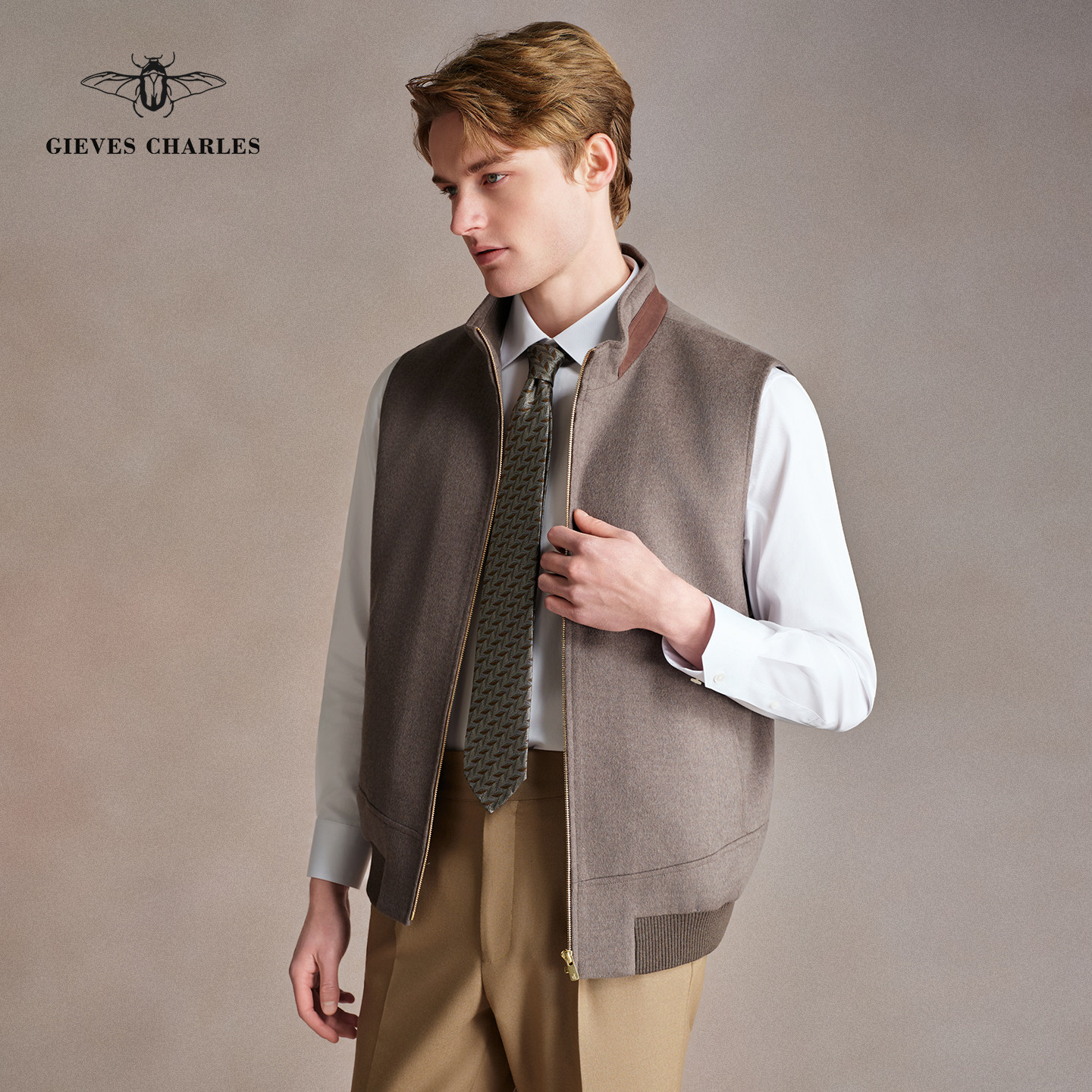 天猫【秋冬新品】羊毛混纺灰色时尚立领马甲行政通勤保暖痞帅马甲男
