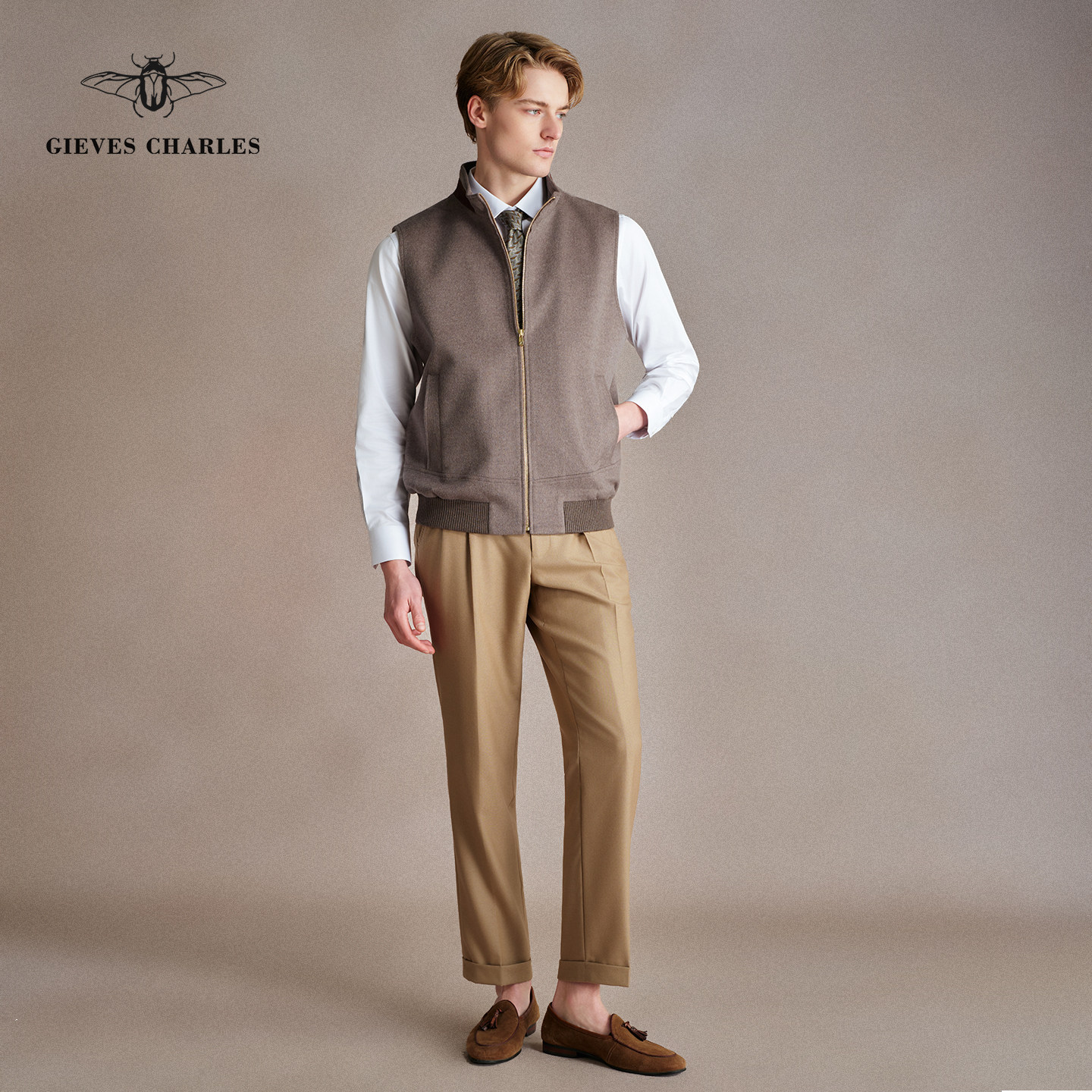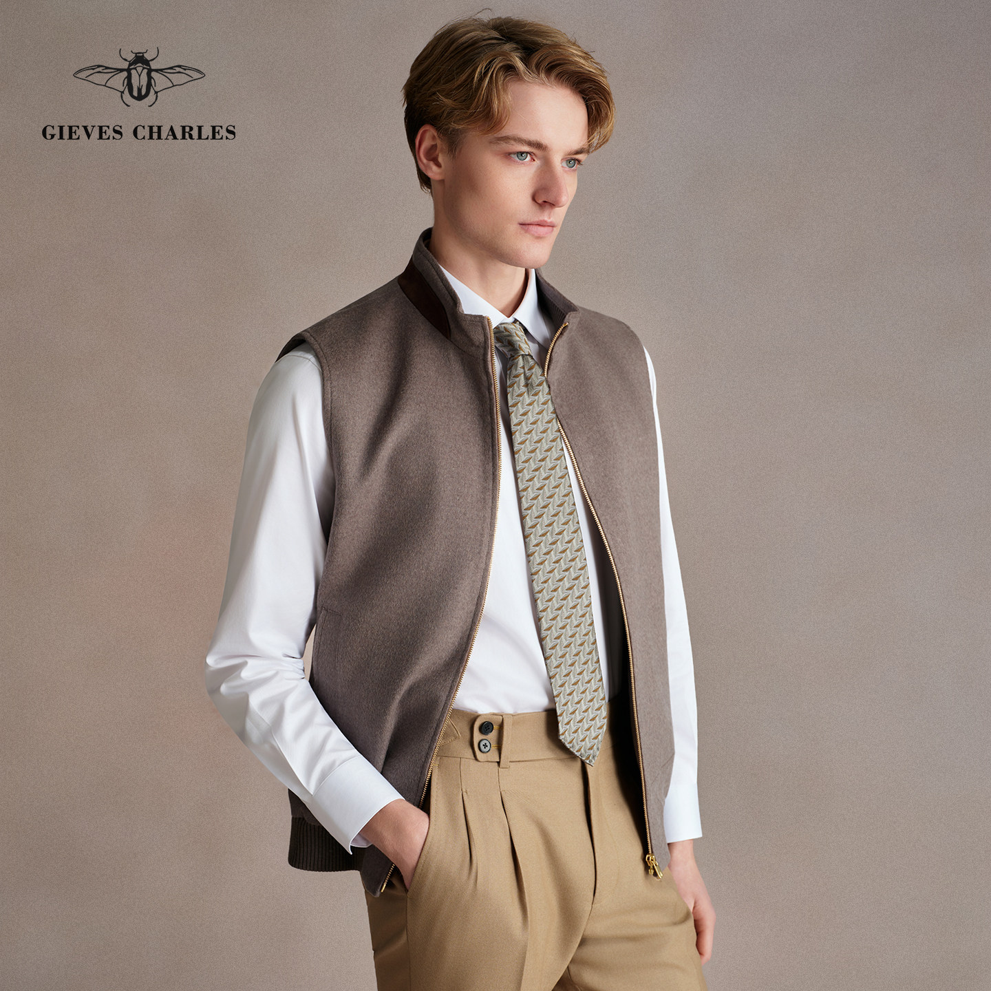 【秋冬新品】羊毛混纺灰色时尚立领马甲,专为都市型男打造。精选高品质羊毛混纺面料,触感柔软、保暖性强,兼顾舒适与挺括感。简约立领设计,凸显干练气质,轻松应对通勤、会议等行政场合。立体剪裁贴合身形,内搭衬衫或高领毛衣皆宜,层次感十足。低调高级灰配色,百搭不挑人,轻松穿出痞帅型格。前襟精致纽扣点缀,细节彰显品质。无论是职场穿搭还是日常出行,这款马甲都能为你增添儒雅与不羁并存的独特魅力,是秋冬衣橱不可或缺的时尚单品。