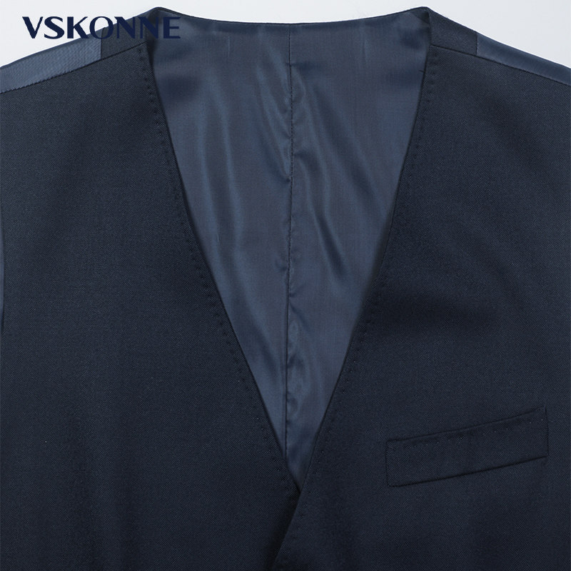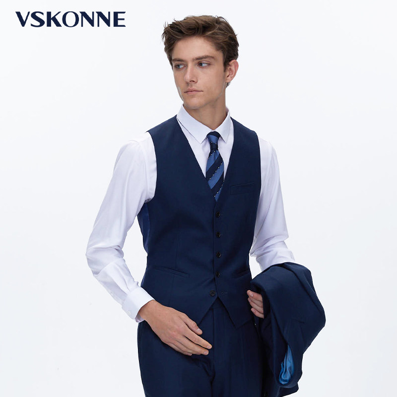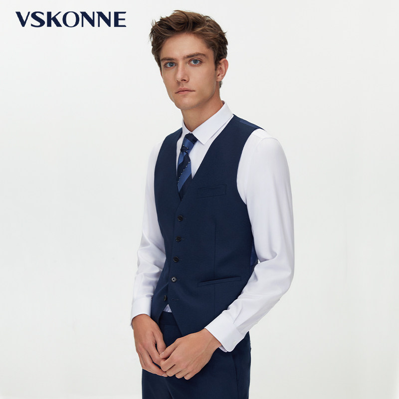 VSKONNE威斯康尼男西装马甲精选意大利VBC顶级100%羊毛面料,质感细腻、垂坠挺括,彰显卓越品质。经典藏青色设计沉稳大气,适合商务、婚礼及正式场合,轻松搭配西装或衬衫,展现绅士风范。立体剪裁贴合身形,兼顾舒适与修身效果,细节处如手工缝线、真丝内衬及精致扣饰,尽显匠心工艺。无论是作为三件套组成部分,还是单独搭配,均能提升整体造型的层次感与高级感。VSKONNE威斯康尼以意式美学融合现代设计,为追求品味的男士提供兼具优雅与实穿性的高端西服马甲选择。
